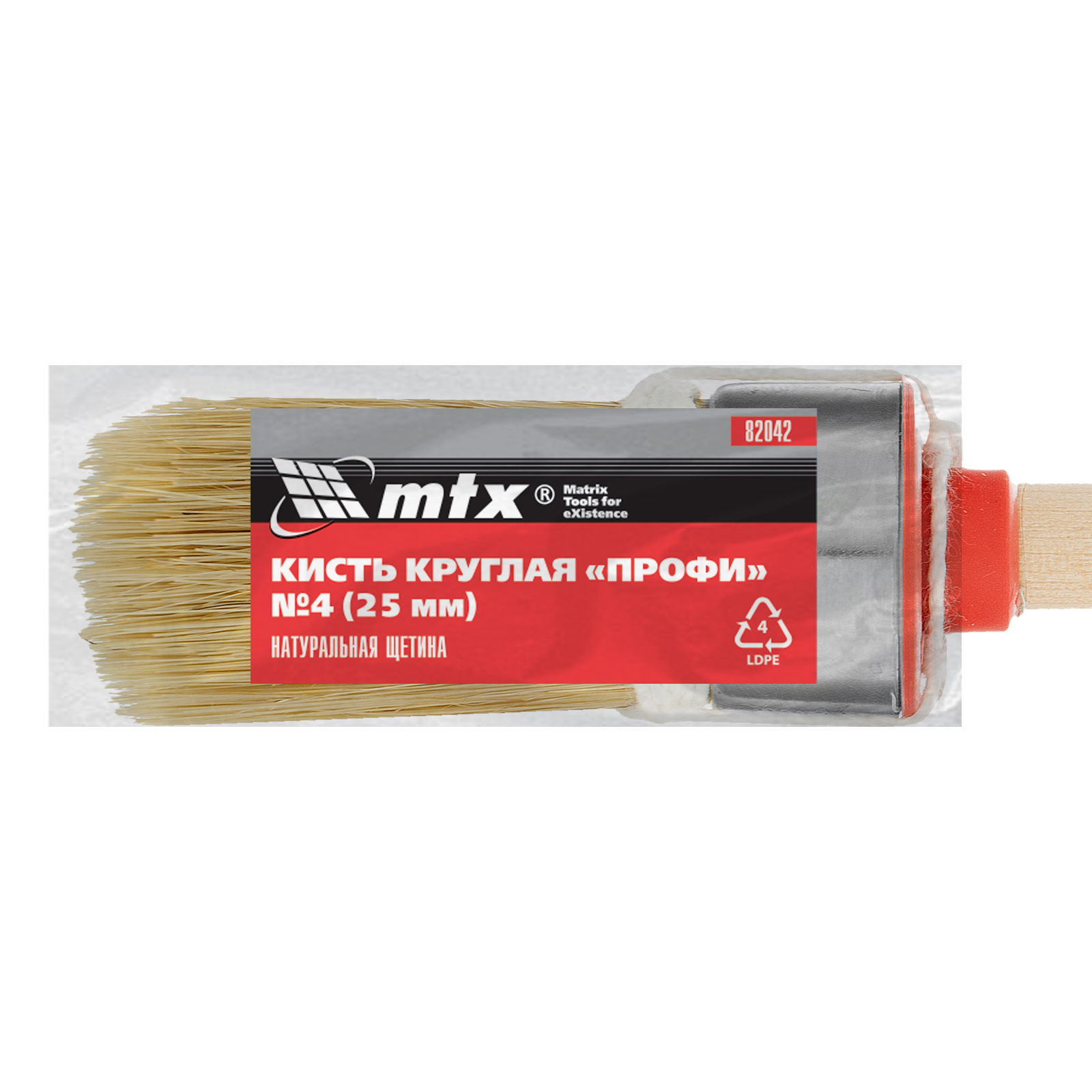 Кисть круглая, Профи №4 (25 мм) натуральная щетина, деревянная ручка MTX