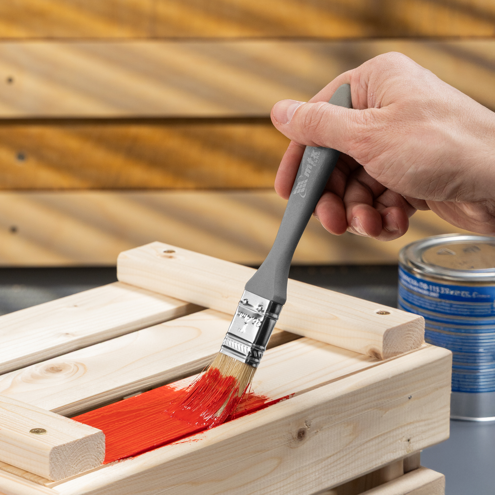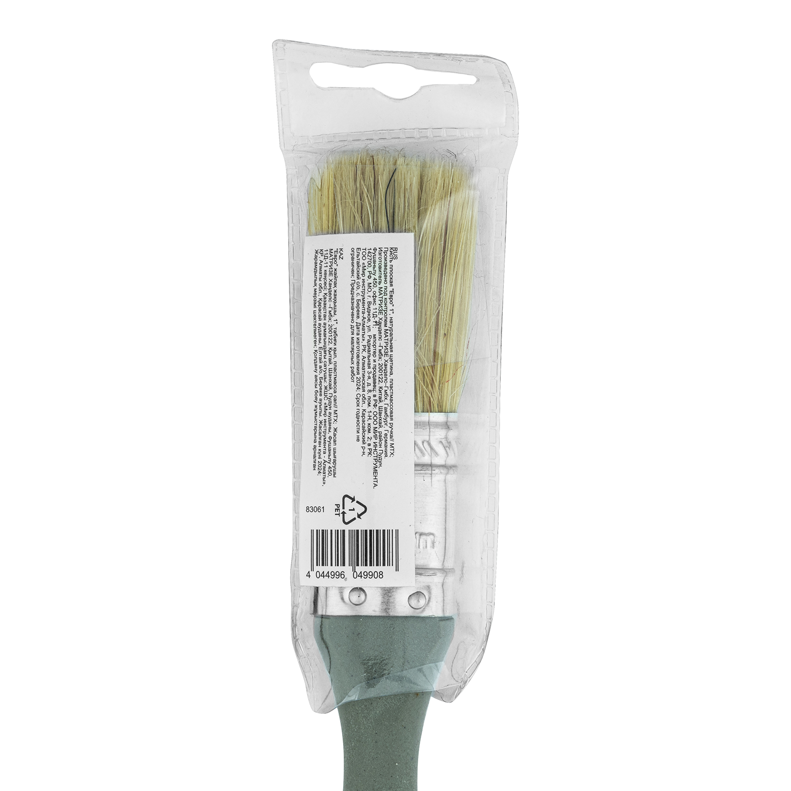 Плоская кисть MTX «Евро» 83061 шириной 1 дюйм, с натуральной щетиной и пластмассовой ручкой, используется для профессионального окрашивания поверхностей. Рекомендуется для нанесения агрессивных ЛКМ с содержанием растворителей.