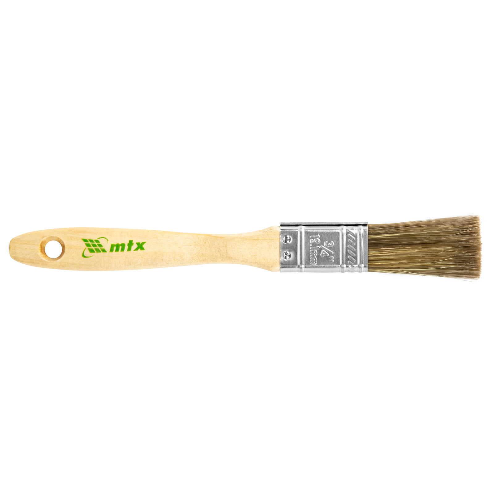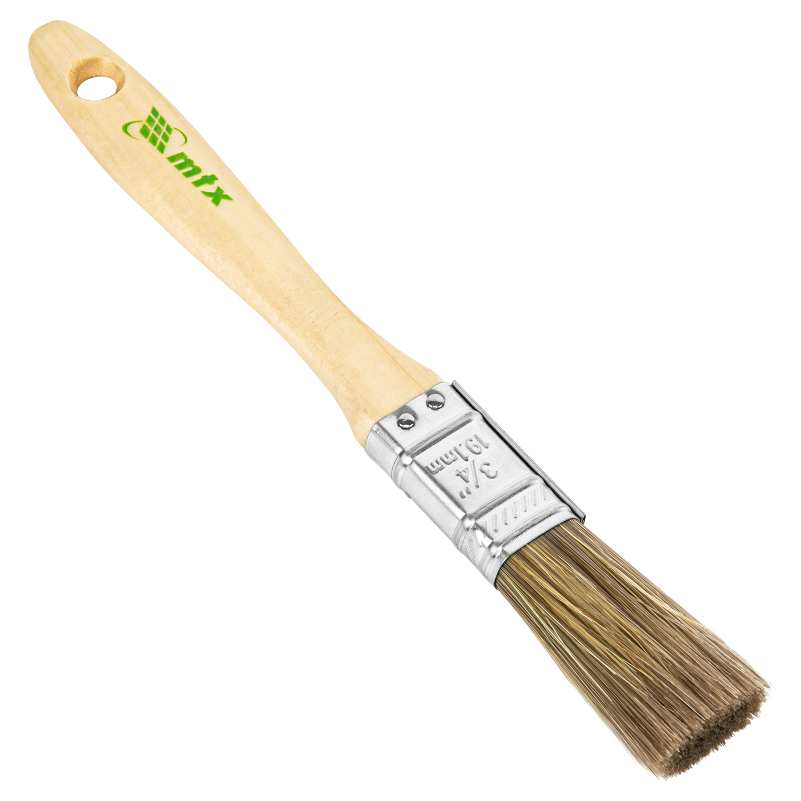 Плоская кисть MTX «Евро» 83076 шириной 3/4", с деревянной ручкой, имеет смешанную щетину и оптимальна для нанесения средств защиты древесины (пропитки, грунтовки, антисептиков, морилки). Сочетает все преимущества искусственной и натуральной щетины благодаря оптимальной комбинации натуральных и искусственных волокон. Обладает высокими краскообменными качествами: благодаря натуральной щетине в составе кисть хорошо впитывает и отдает краску. Инструмент подходит для профессионального использования.