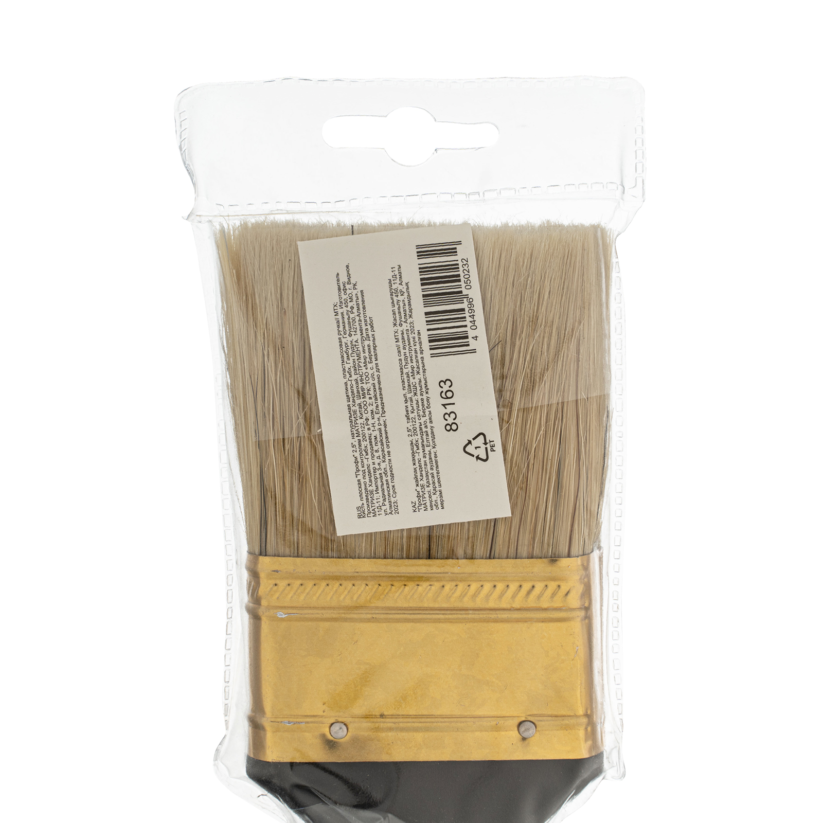 Плоская кисть «Профи» MTX 83163 шириной 2,5 дюйма, с натуральной щетиной и пластмассовой ручкой, рассчитана на профессиональное выполнение малярных работ. Натуральная щетина с увеличенной плотностью набивки подходит для нанесения различных типов ЛКМ, в том числе содержащих растворители.
