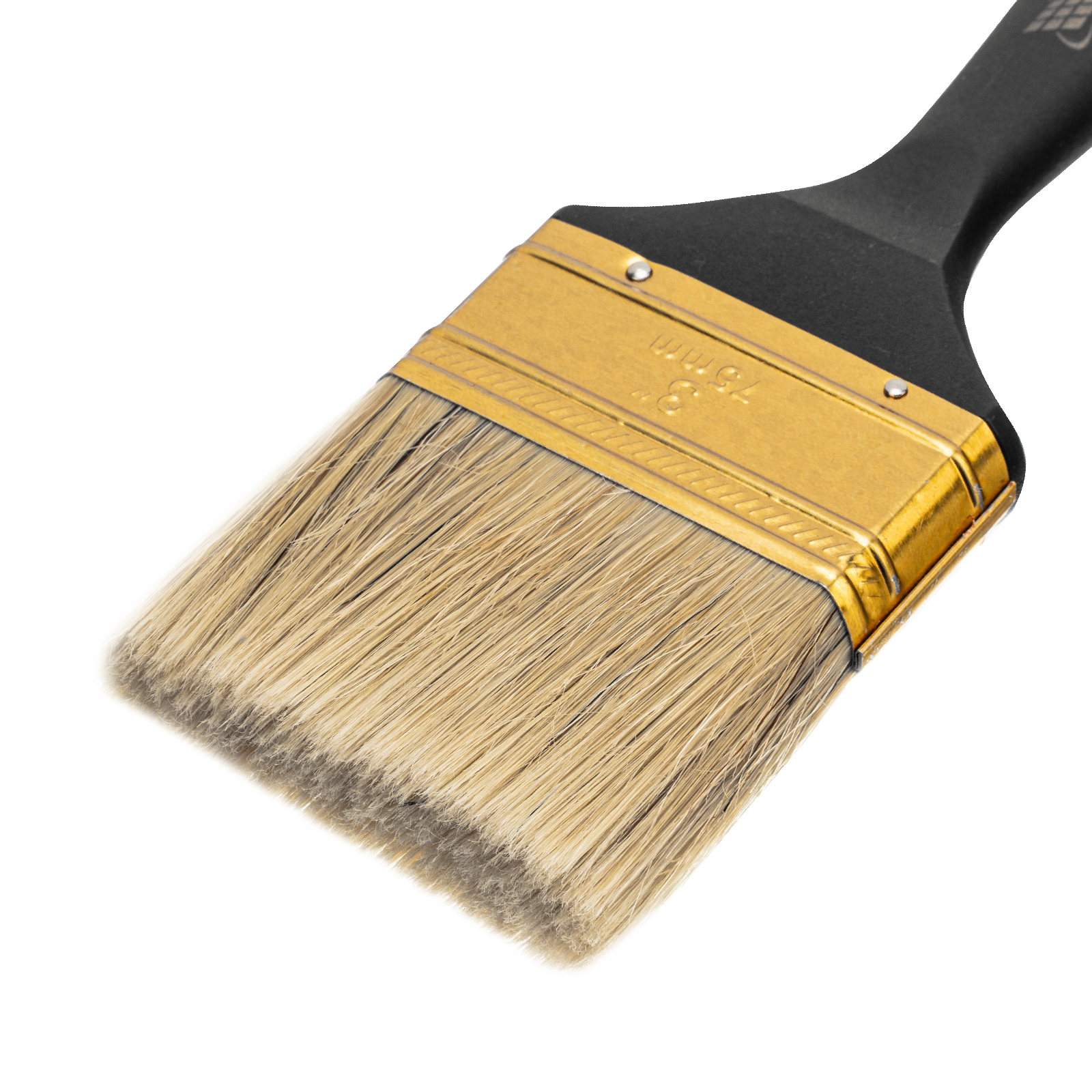 - Ширина 75 мм — кисть оптимальна для окрашивания поверхностей большой площади.