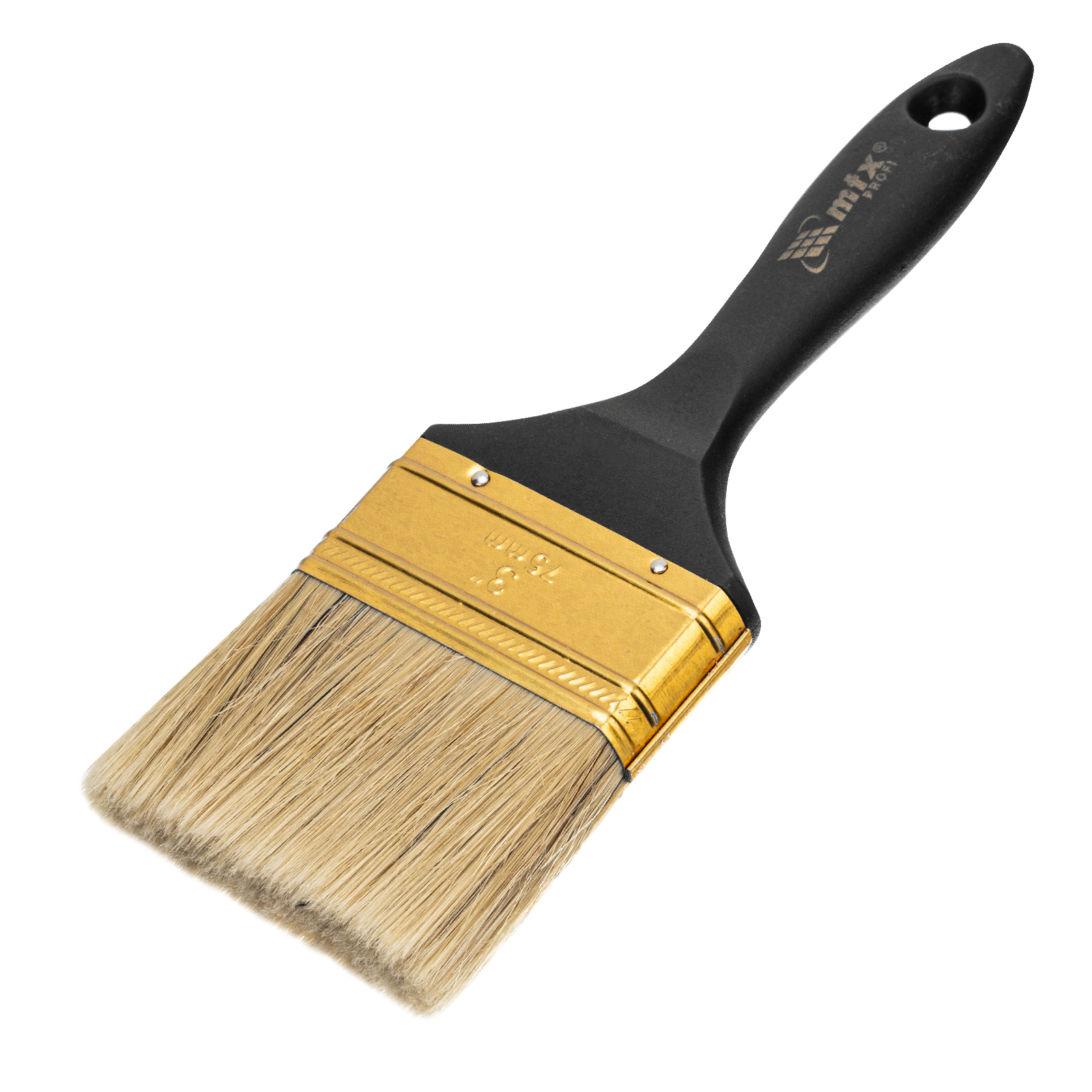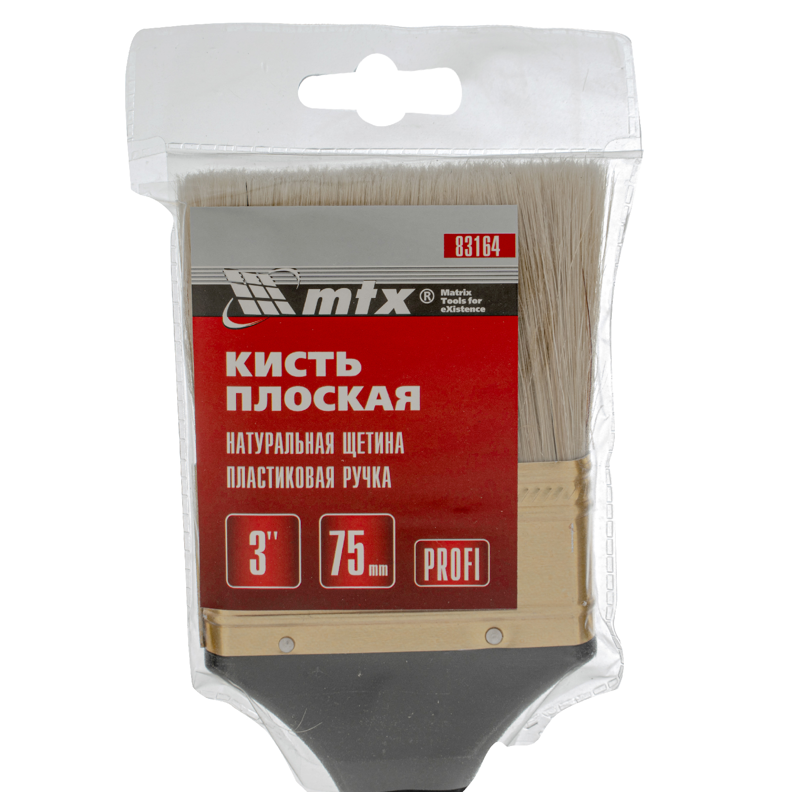 Плоская кисть «Профи» MTX 83164 шириной 3 дюйма, с натуральной щетиной и пластмассовой ручкой, рассчитана на профессиональное выполнение малярных работ. Натуральная щетина с увеличенной плотностью набивки подходит для нанесения различных типов ЛКМ, в том числе содержащих растворители.