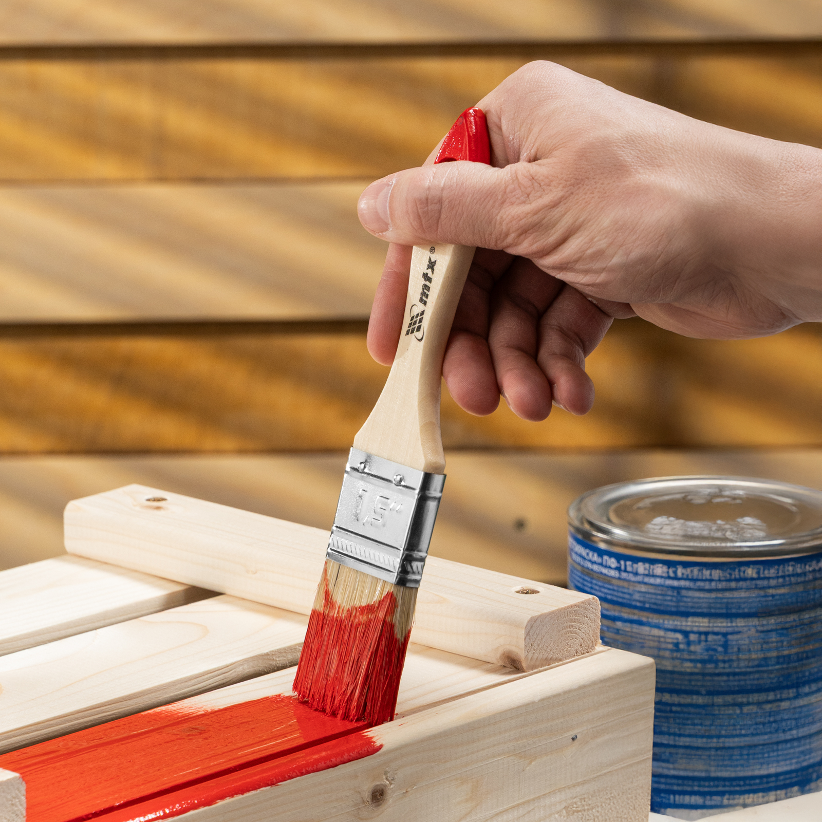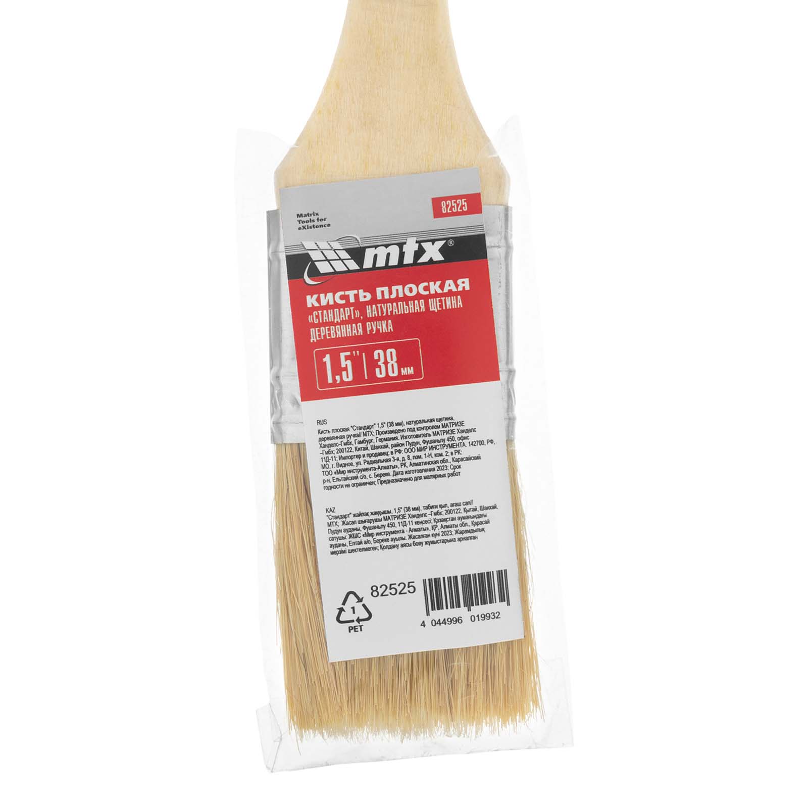 Плоская кисть MTX «Стандарт» 82525 шириной 1,5 дюйма (38 мм), с натуральной щетиной и деревянной ручкой, — инструмент для проведения бытовых малярных работ. Натуральная светлая щетина обладает высокой износоустойчивостью и подходит для нанесения красок на основе растворителей. За счет ширины 38 мм кисть подходит для окрашивания узких поверхностей, например, плинтусов и рам.