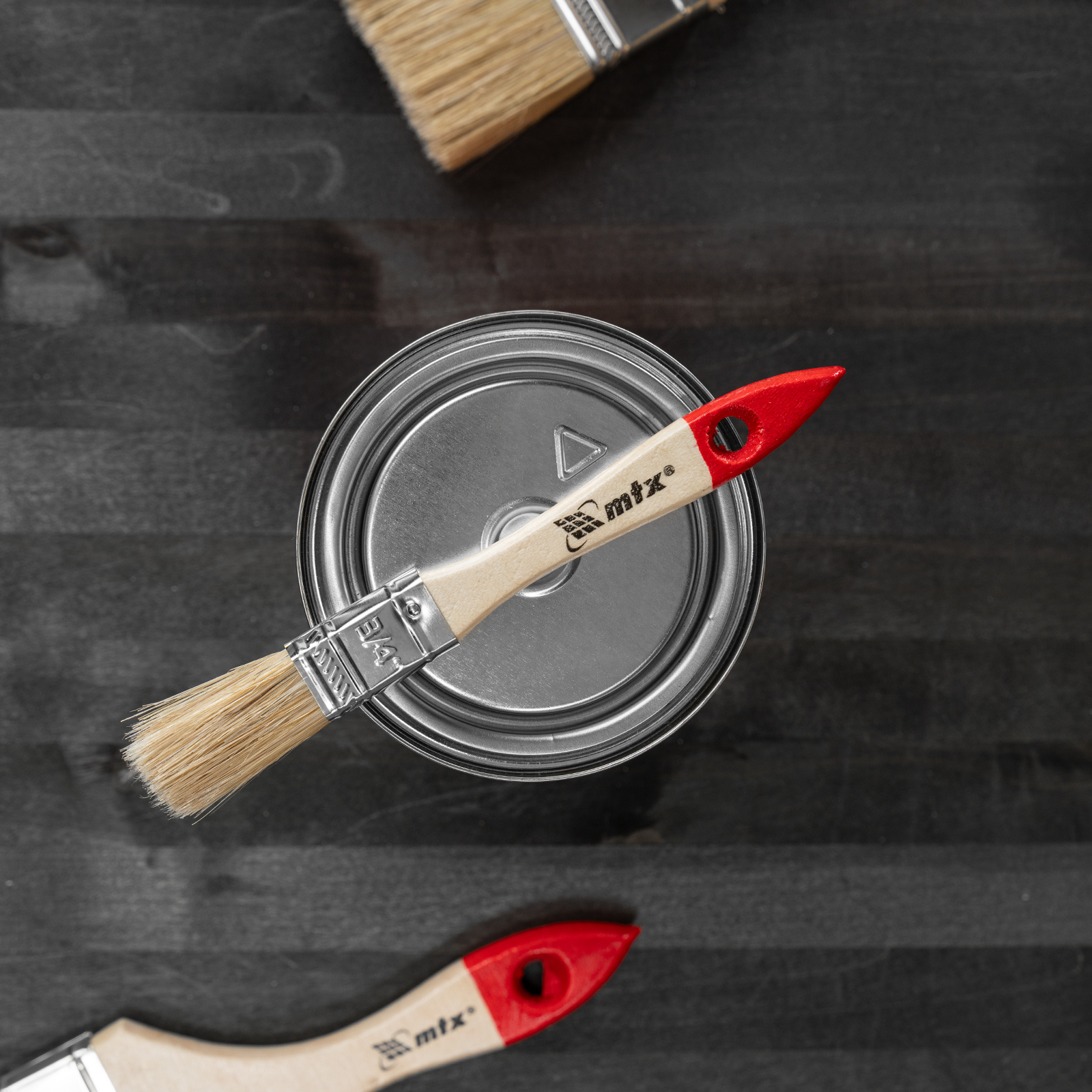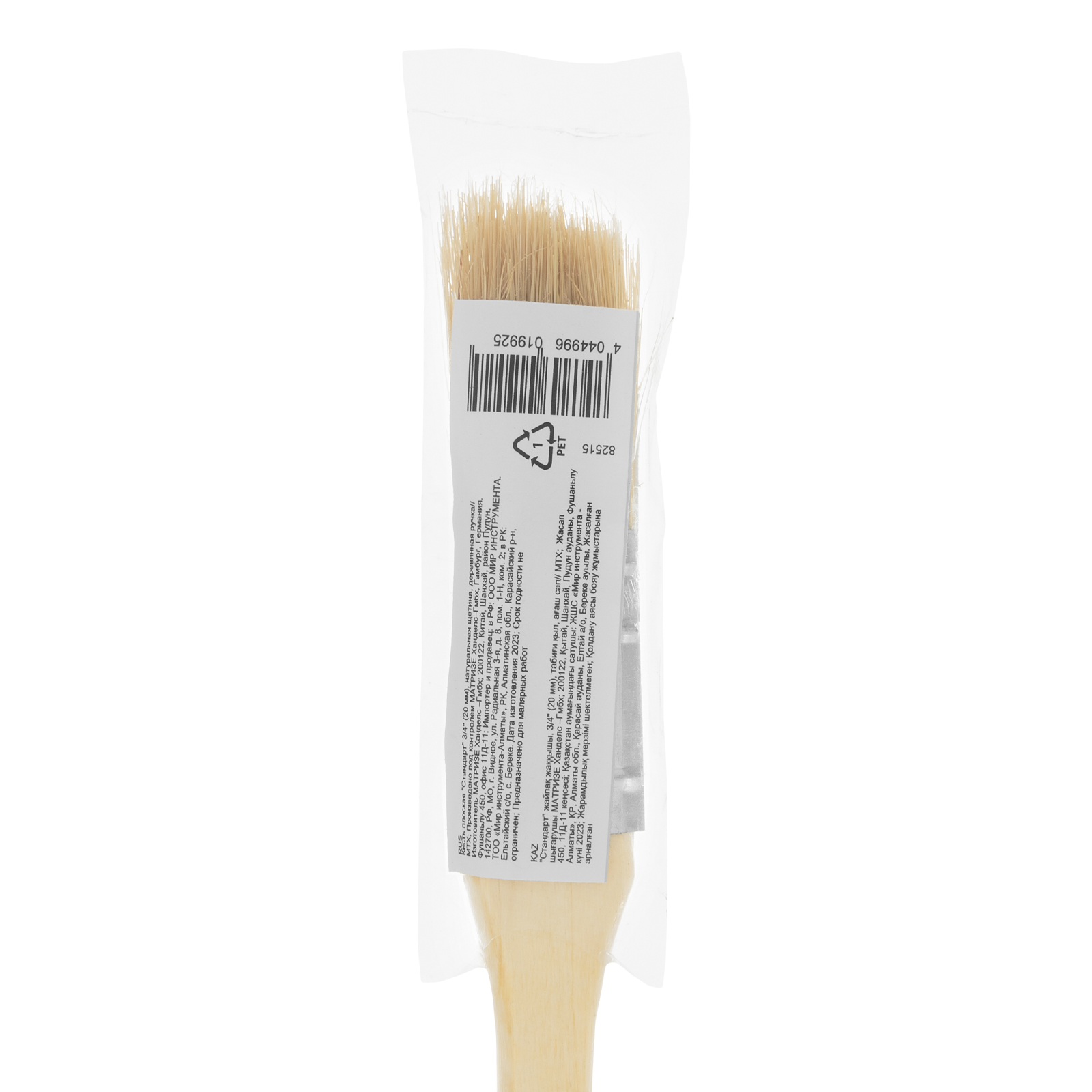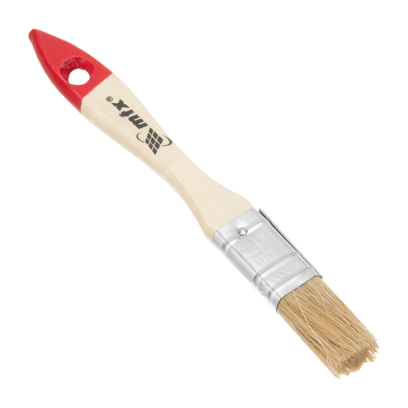 Плоская кисть MTX «Стандарт» 82515 шириной 3/4 дюйма (20 мм), с натуральной щетиной и деревянной ручкой, — инструмент для проведения бытовых малярных работ. Натуральная светлая щетина обладает высокой износоустойчивостью и подходит для нанесения красок на основе растворителей. За счет ширины 20 мм кисть подходит для окрашивания узких поверхностей, например, плинтусов и рам.