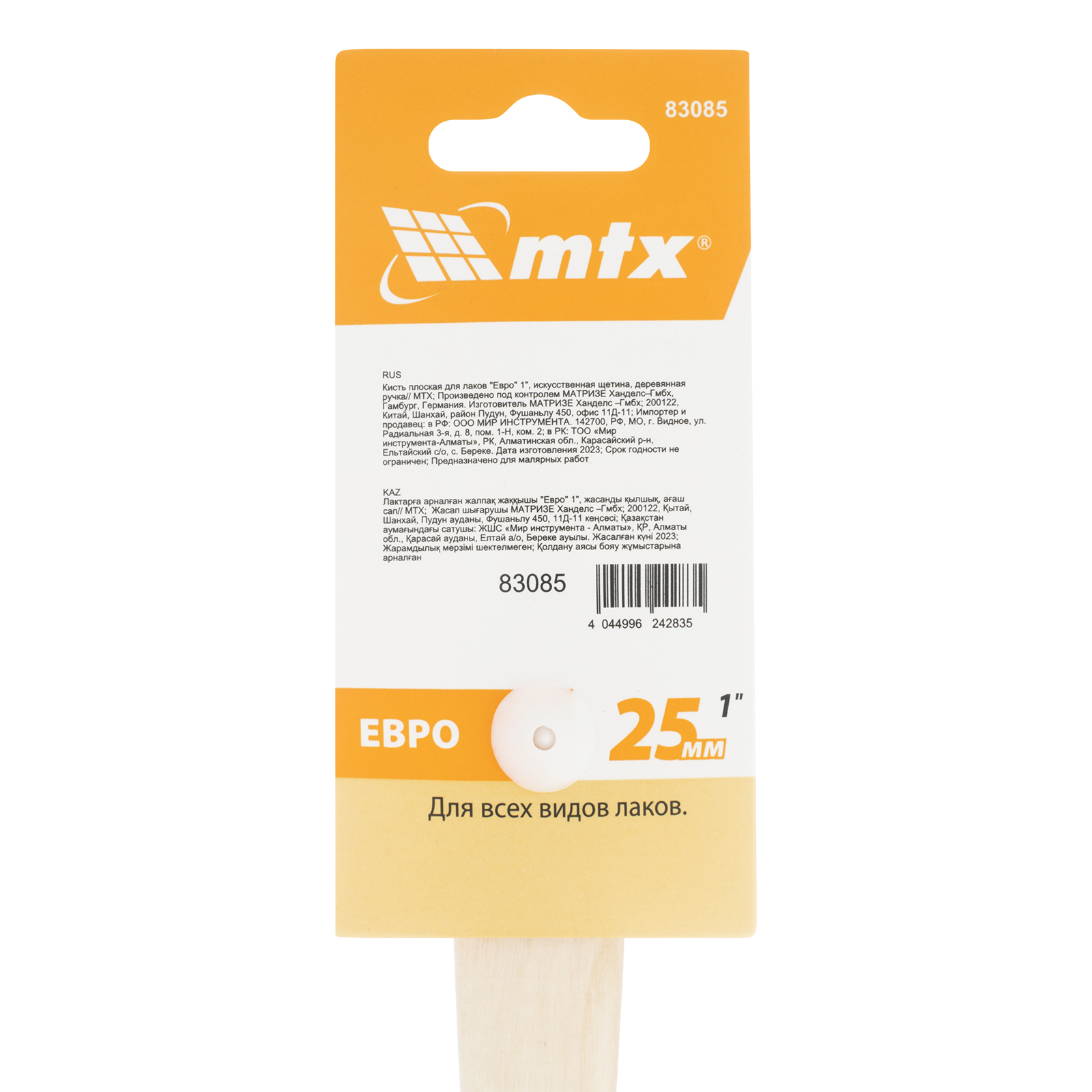 Кисть плоская MTX «Евро» 83085 шириной 1", с искусственной щетиной и деревянной ручкой, пригодится при проведении малярных работ. Предназначена для работы с любыми типами лаков. Мягкая и упругая щетина оптимальна для нанесения покрытий на гладкие и слегка шероховатые поверхности.