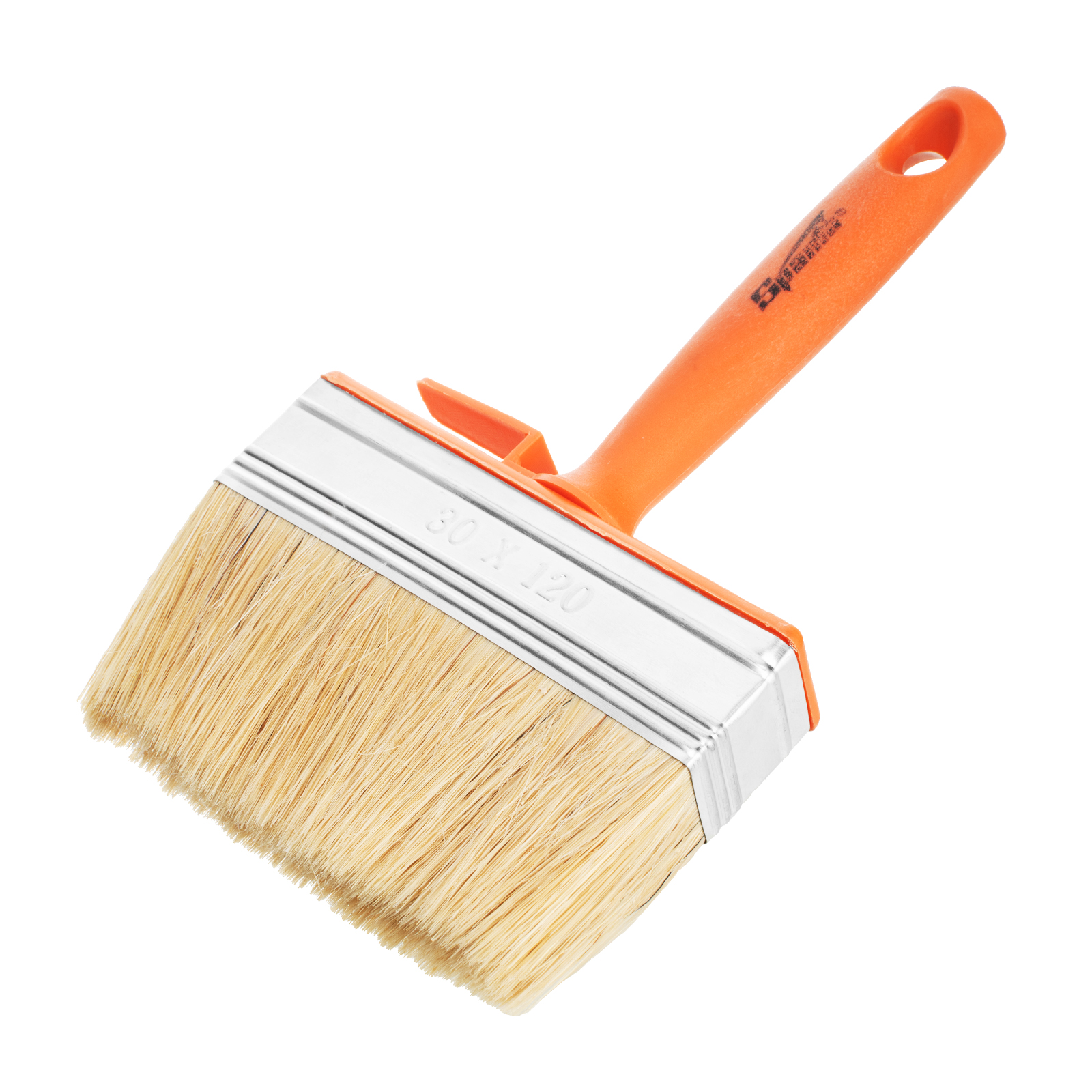 Кисть-ракля Sparta 841035 толщиной 30 мм и шириной 120 мм, с натуральной щетиной, пластмассовыми корпусом и ручкой, используется для малярных работ на участках большой площади, поэтому удобна для обработки стен, потолков и фасадов. Натуральная щетина устойчива к химическому воздействию, поэтому не деформируется и сохраняет упругость при работе с ЛКМ на водной основе, грунтовками, масляными красками и клеящими составами.