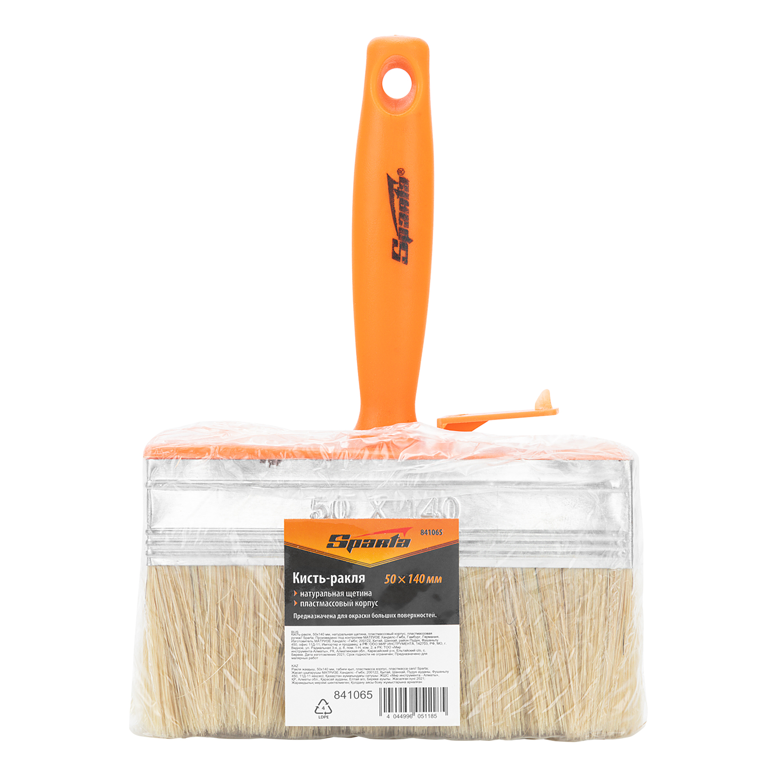Кисть-ракля Sparta 841065 толщиной 50 мм и шириной 140 мм, с натуральной щетиной, пластмассовыми корпусом и ручкой, используется для малярных работ на участках большой площади, поэтому удобна для обработки стен, потолков и фасадов. Натуральная щетина устойчива к химическому воздействию, поэтому не деформируется и сохраняет упругость при работе с ЛКМ на водной основе, грунтовками, масляными красками и клеящими составами.