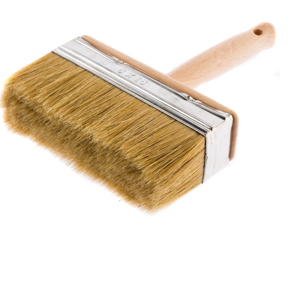 Кисть-ракля 84082 толщиной 50 мм и шириной 150 мм, с натуральной щетиной, деревянными корпусом и ручкой, служит для нанесения лакокрасочных материалов на поверхности большой площади. Может использоваться для обработки фасадов, стен и потолков. Натуральная щетина с добавлением искусственного ворса не деформируется при работе с водно-дисперсионными красками и устойчива к растворителям. Поэтому кисть может применяться с ЛКМ на водной основе, масляными красками, лаками, а также клеящими составами.