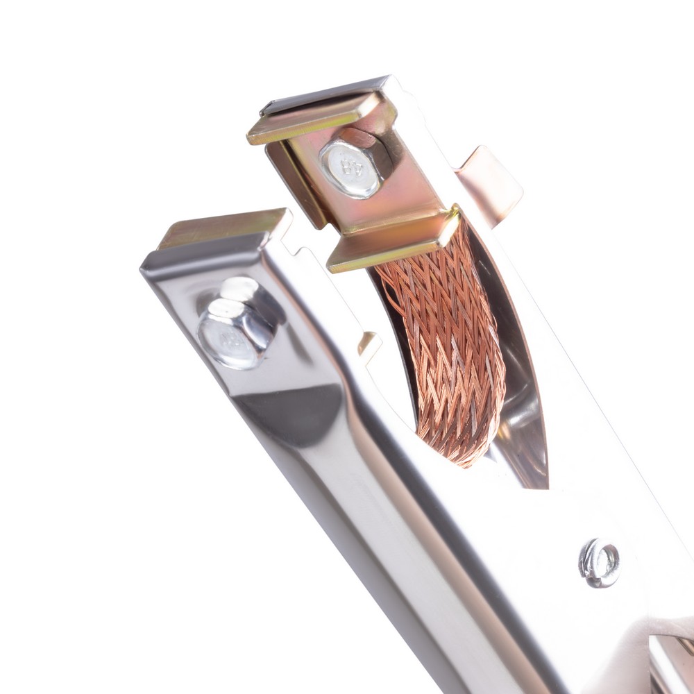Конструкция клемм заземления VARTEG EC-300 обладает устойчивостью к высоким механическим и тепловым нагрузкам. Она состоит из трех основных частей — корпуса, губок и косички. Благодаря медному соединению и большой силе прижима клемма заземления VARTEG EC-300 создает надежный контакт с рабочей деталью, а также минимальное сопротивление. Также она обеспечивает хорошую фиксацию сварочного кабеля, что повышает безопасность и эффективность выполнения работ.