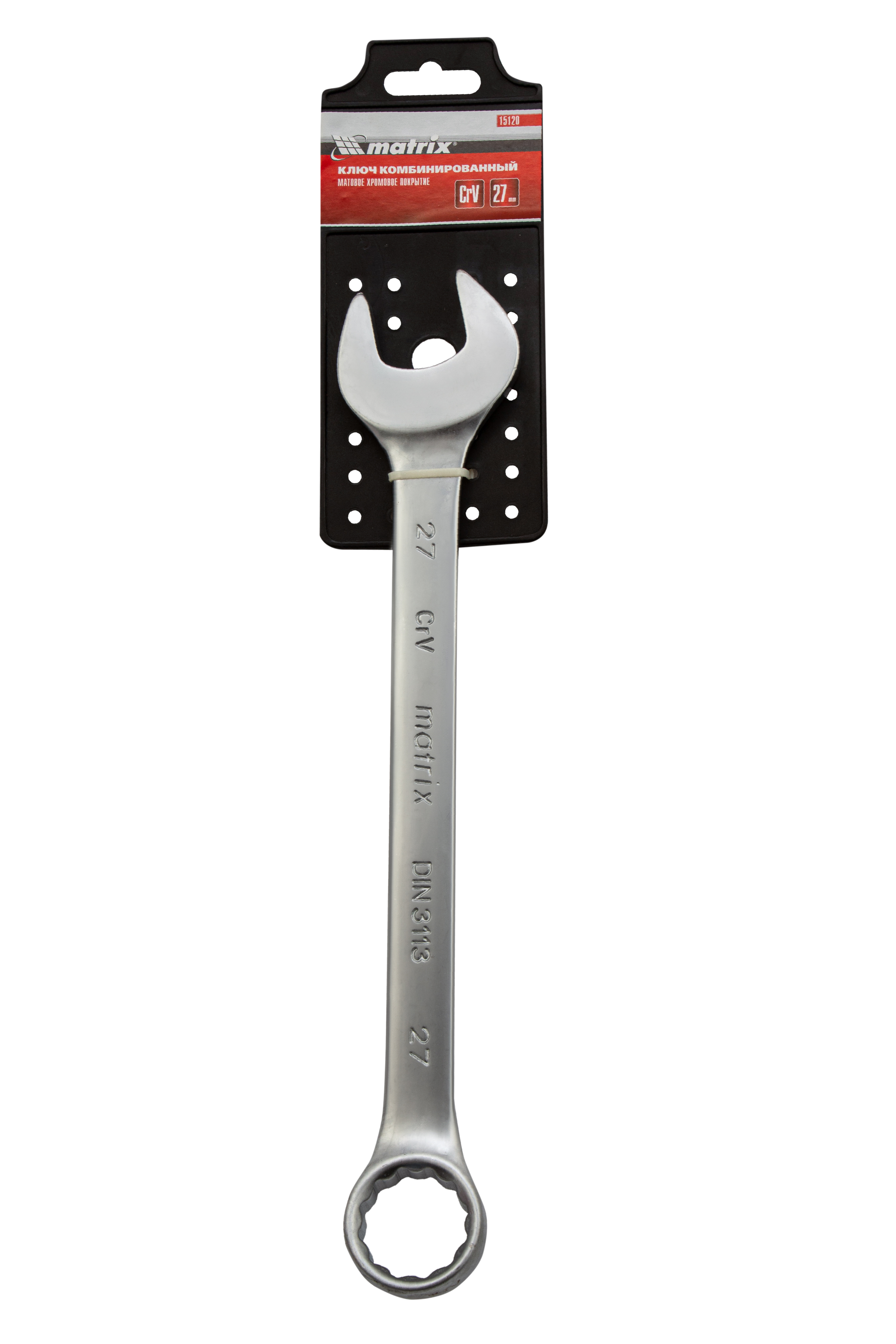 Ключ комбинированный, 27 мм, CrV, матовый хром Matrix