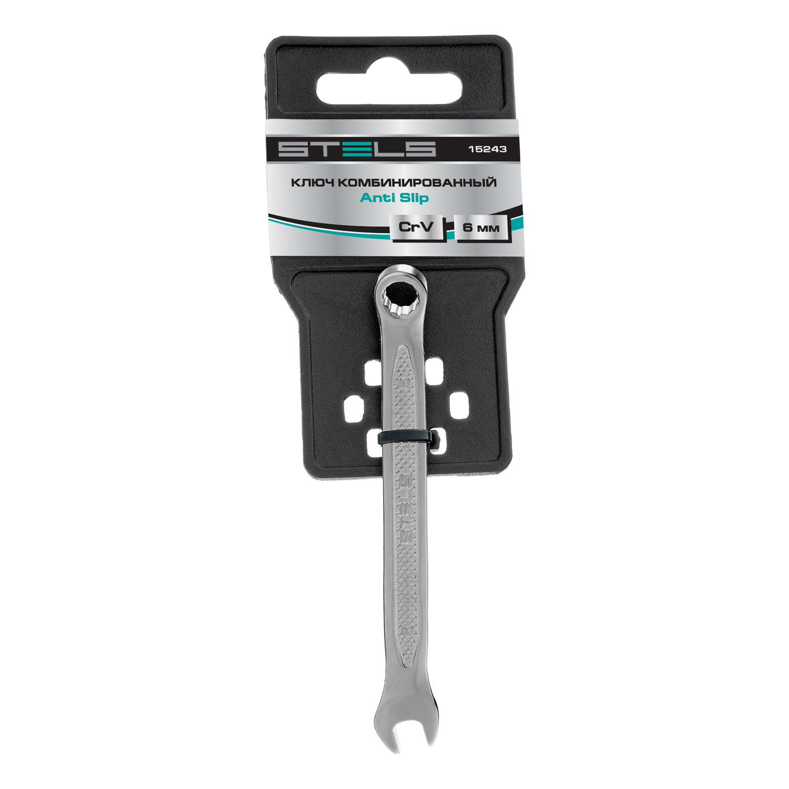 Ключ комбинированный, 6 мм, CrV, антислип Stels