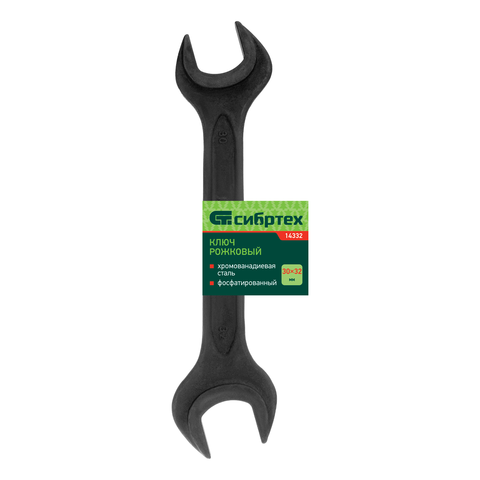 Ключ рожковый, 30 х 32 мм, CrV, фосфатированный Сибртех