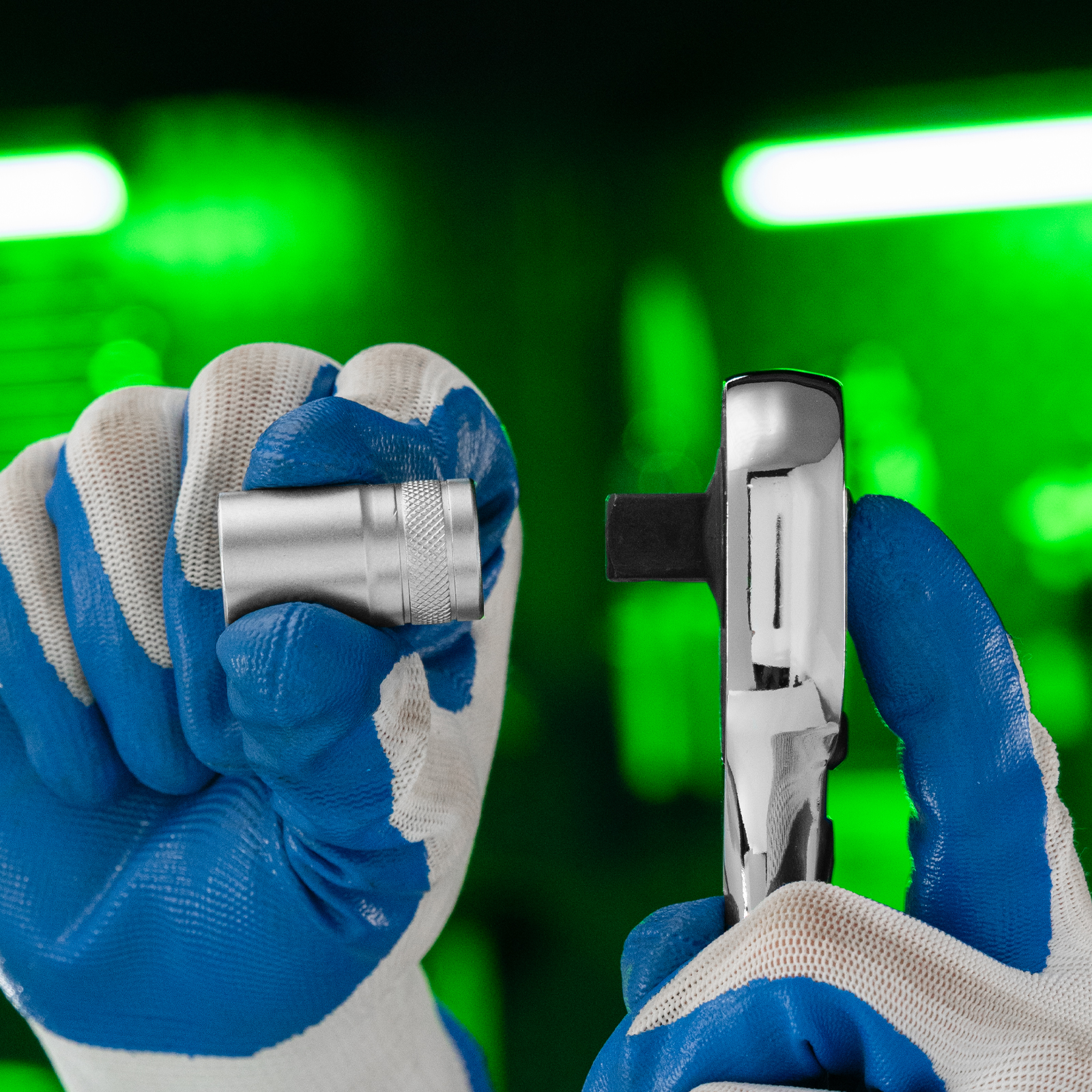- Надежная фиксация — шариковый замок крепко удерживает торцевую головку, поэтому она не соскочит во время работы.