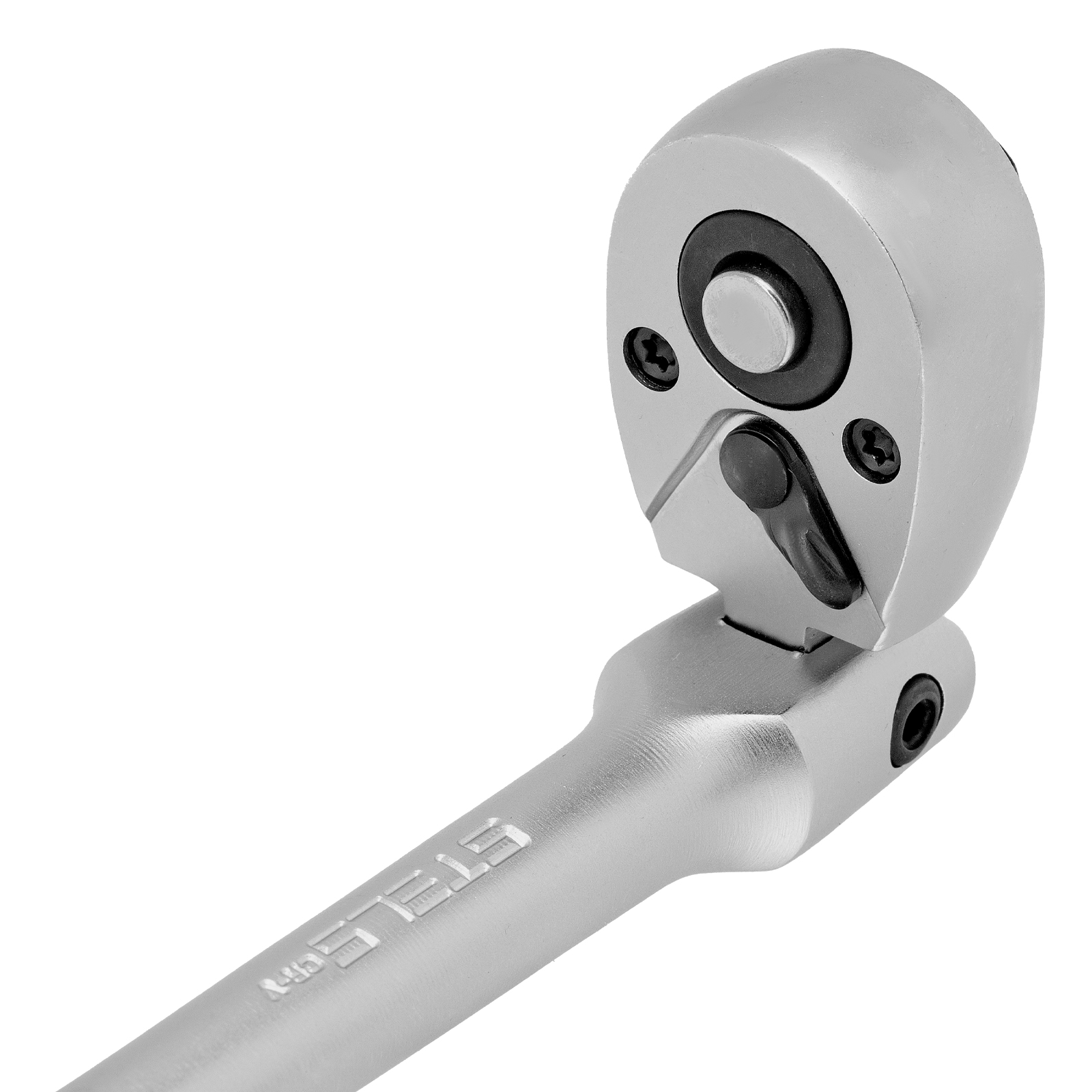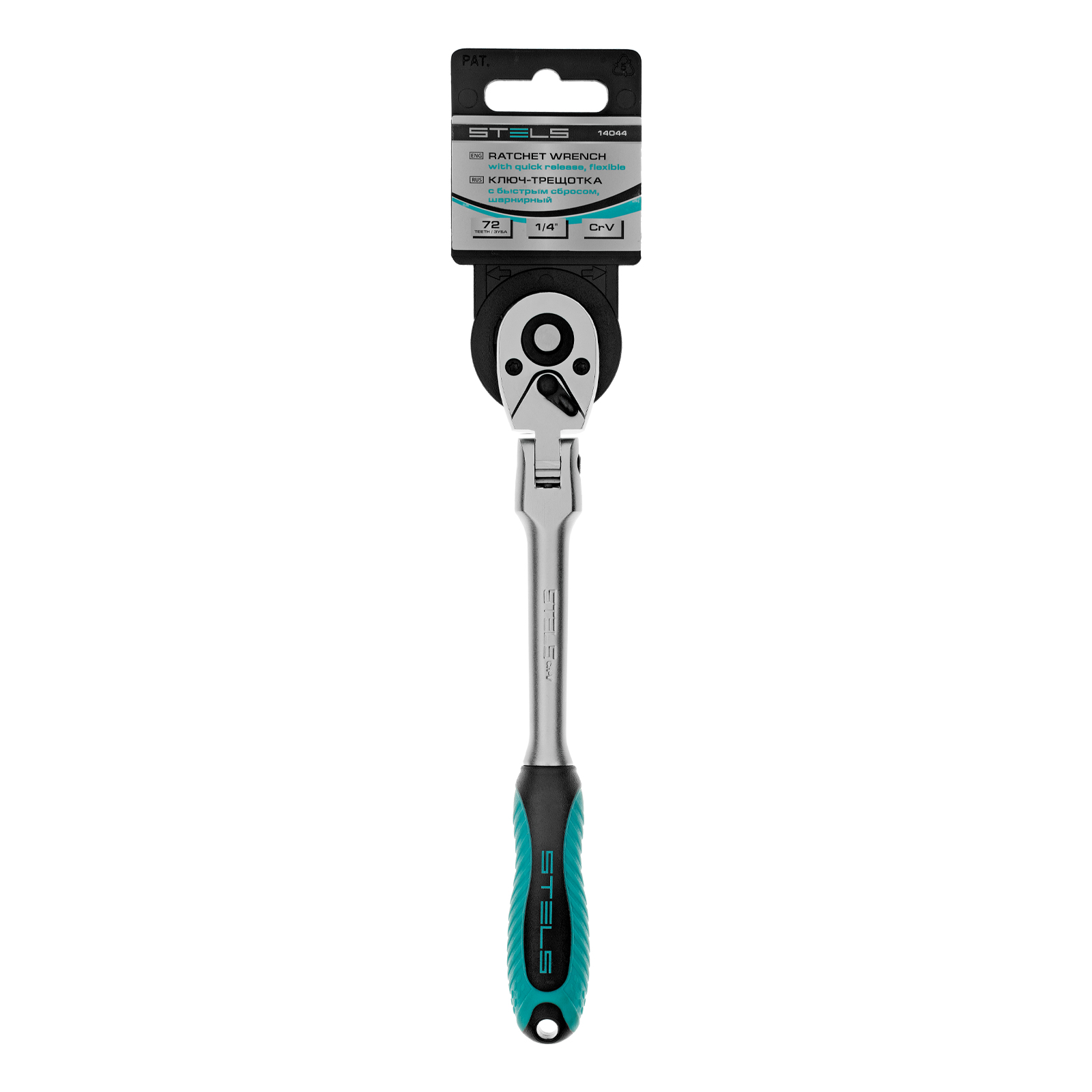 Ключ-трещотка шарнирный 1/4", СrV, 72 зуба, с быстрым сбросом, матовый хром Stels