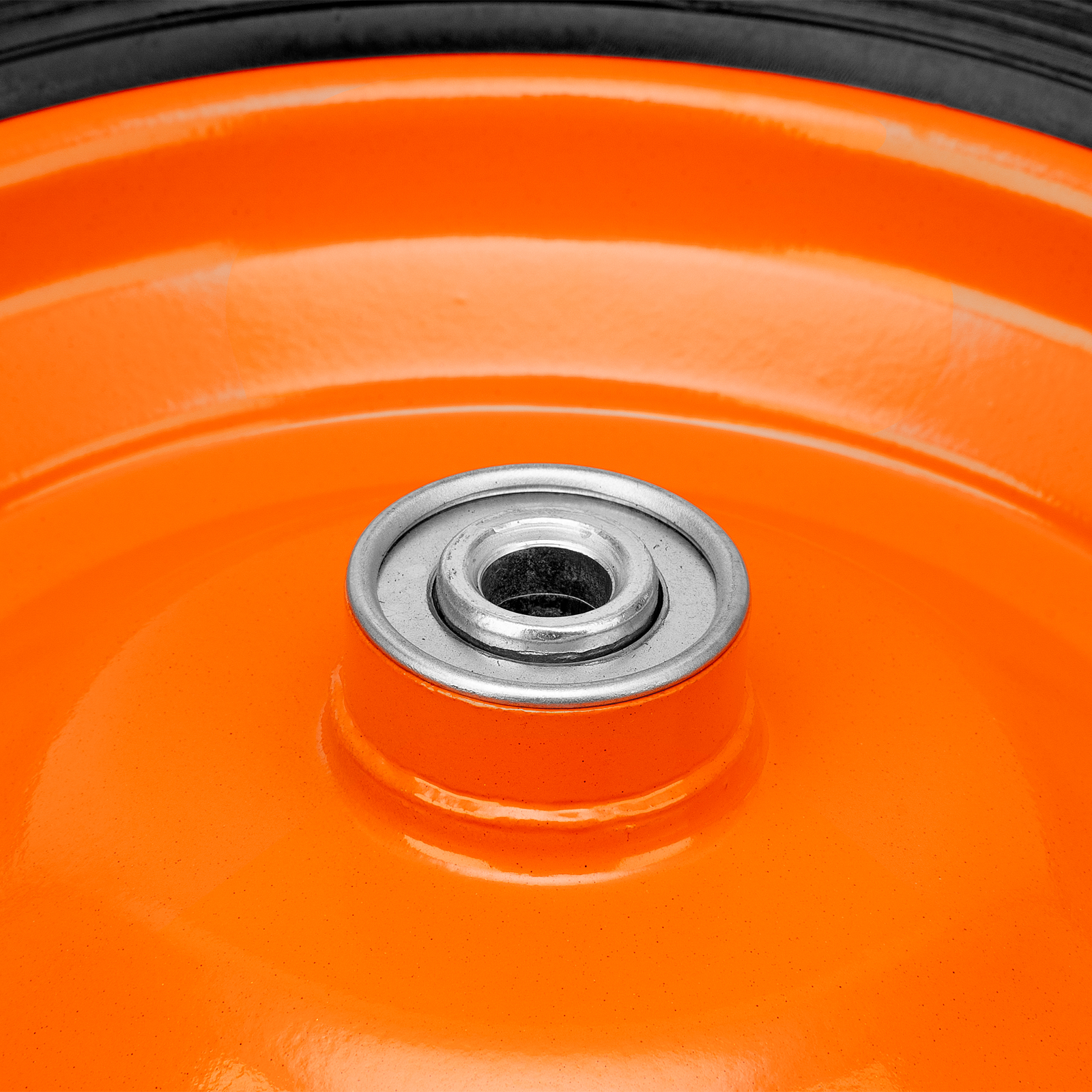 - Комфортная работа — пневматическое колесо эффективно поглощает вибрации даже при полной загрузке тачки.