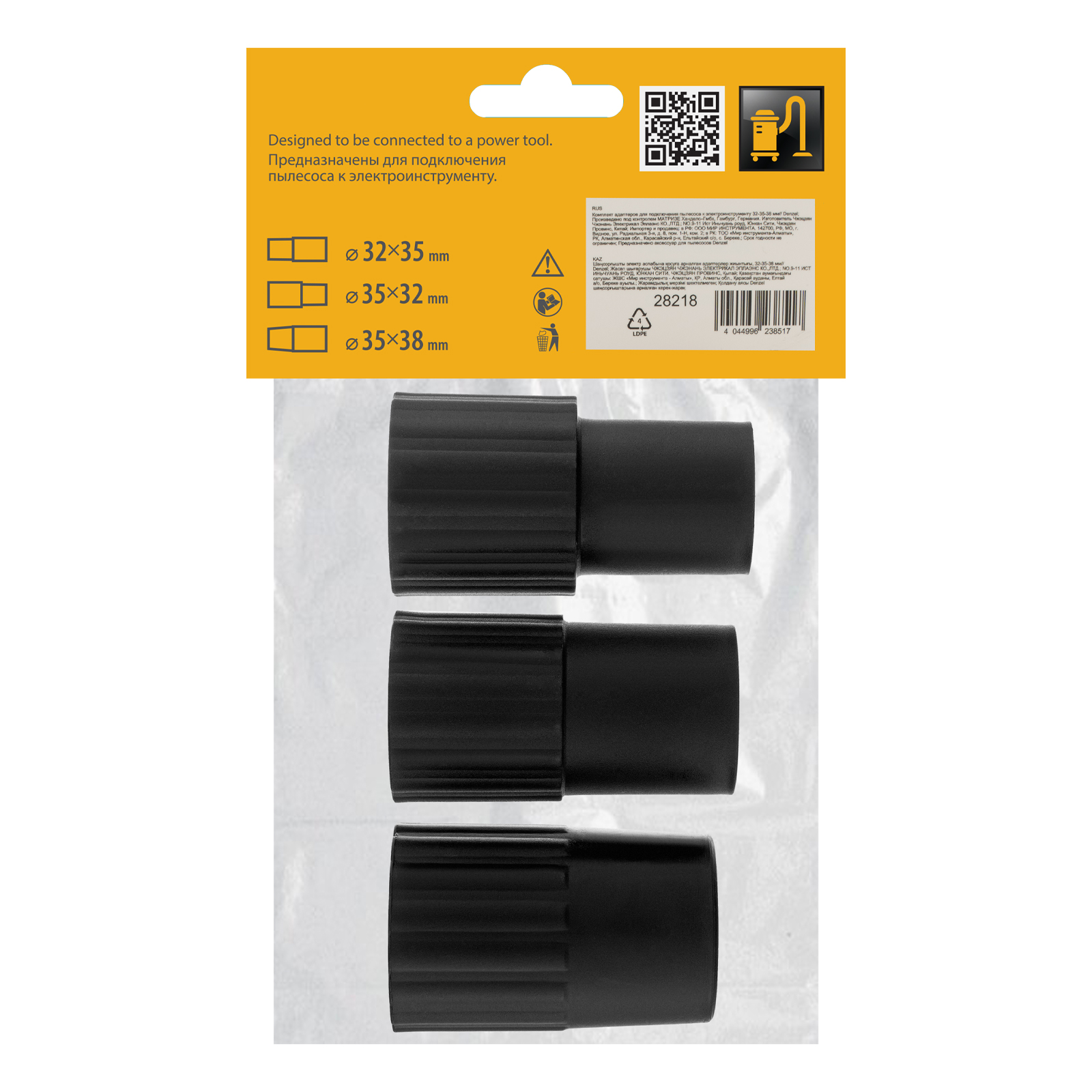 Комплект адаптеров для подключения пылесоса к электроинструменту 32-35-38 мм// Denzel |