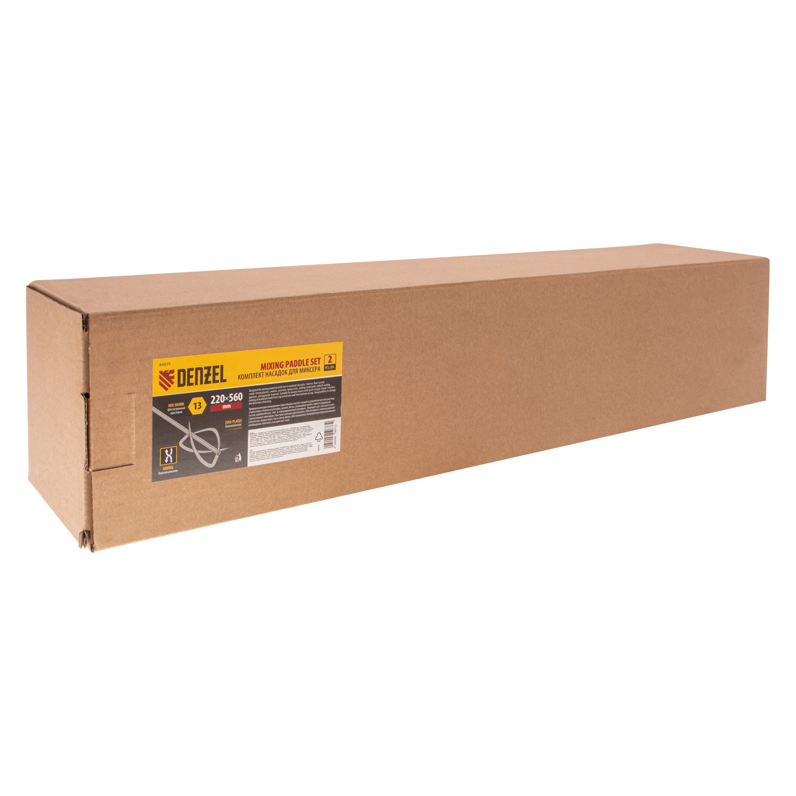 Комплект насадок для строительного миксера, 2шт., 220х560 мм, оцинкованные, хвостовик HEX13 Denzel