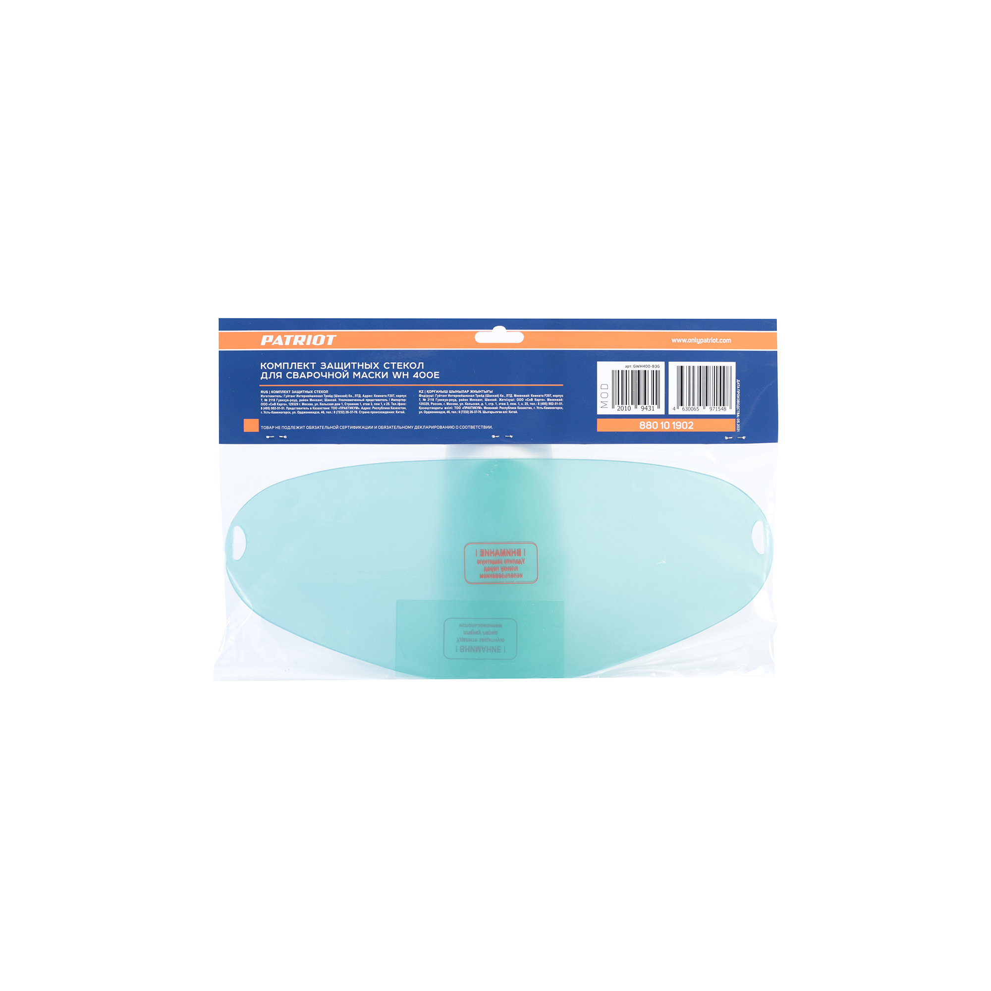 Комплект защитных стекол для маски: 4 шт; Упаковка; |