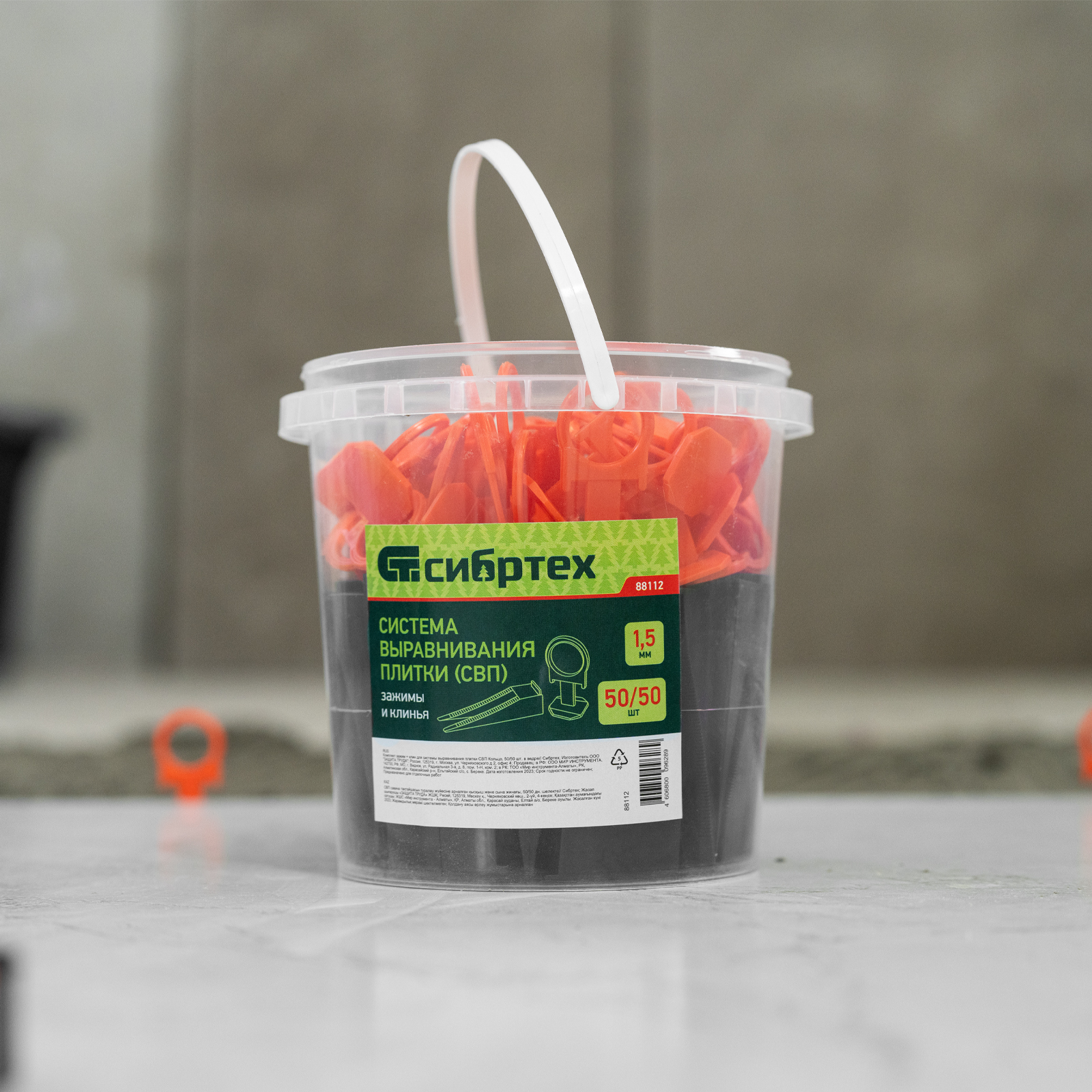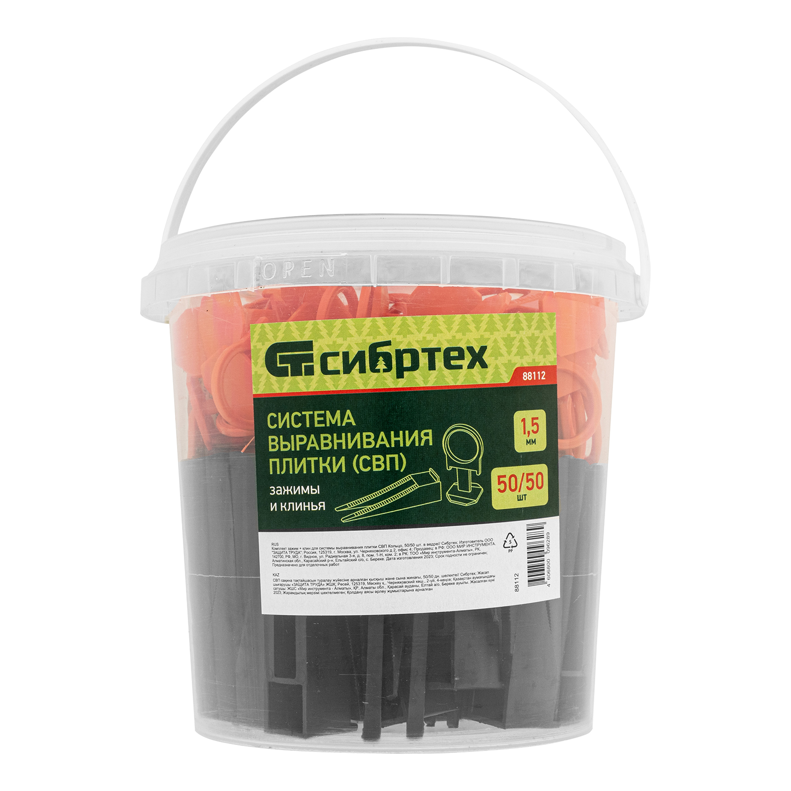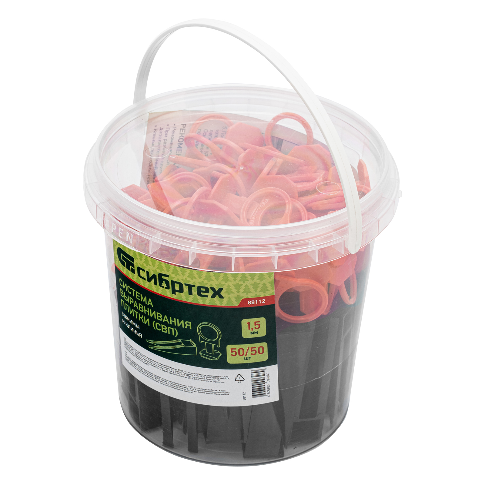 Комплект зажим + клин для системы выравнивания плитки СВП Кольцо, 50/50 шт. в ведре Сибртех