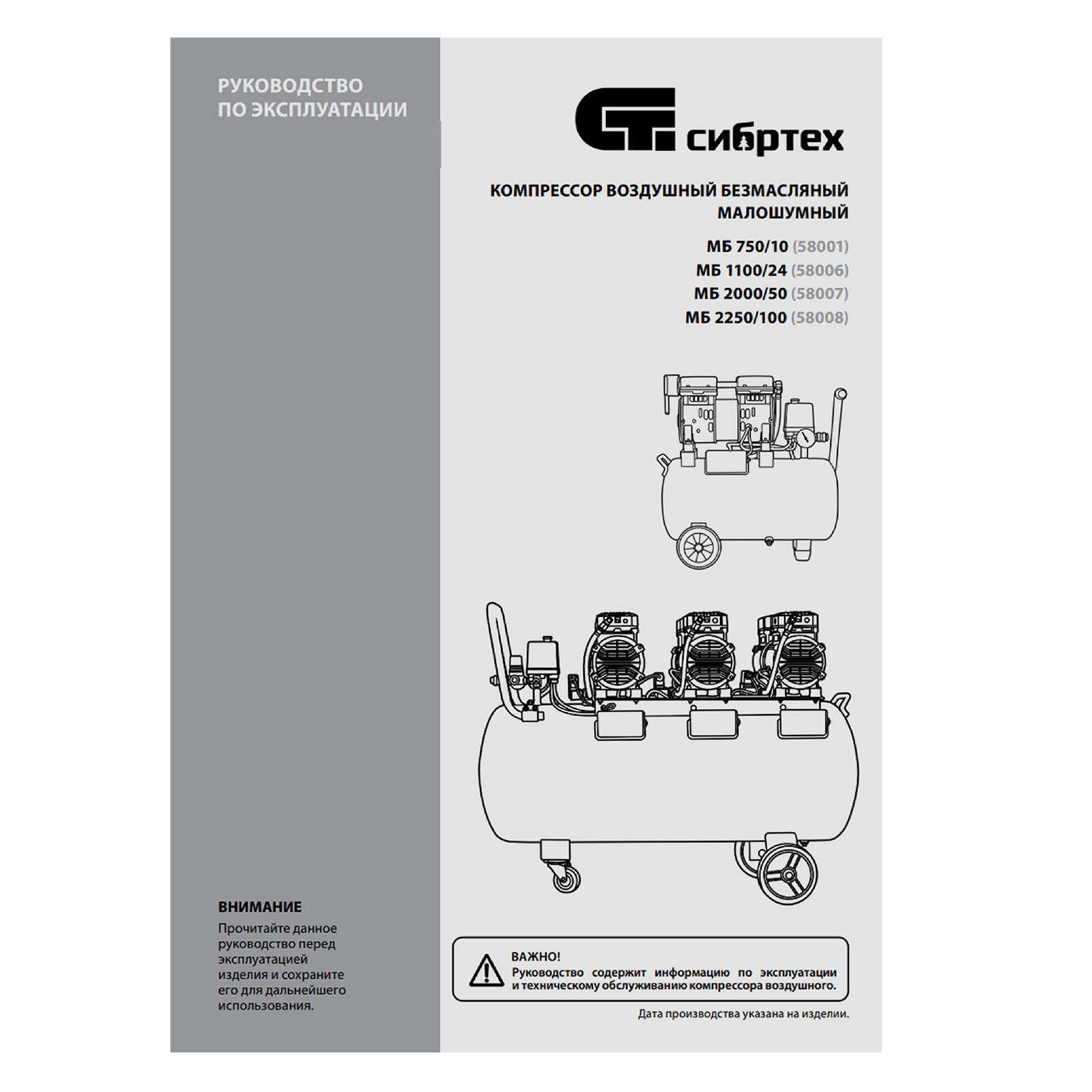Компрессор - 1 штВиброопора с крепежом - 4 штВоздушный фильтр - 1 штРуководство по эксплуатации с гарантийным талоном - 1 шт |
