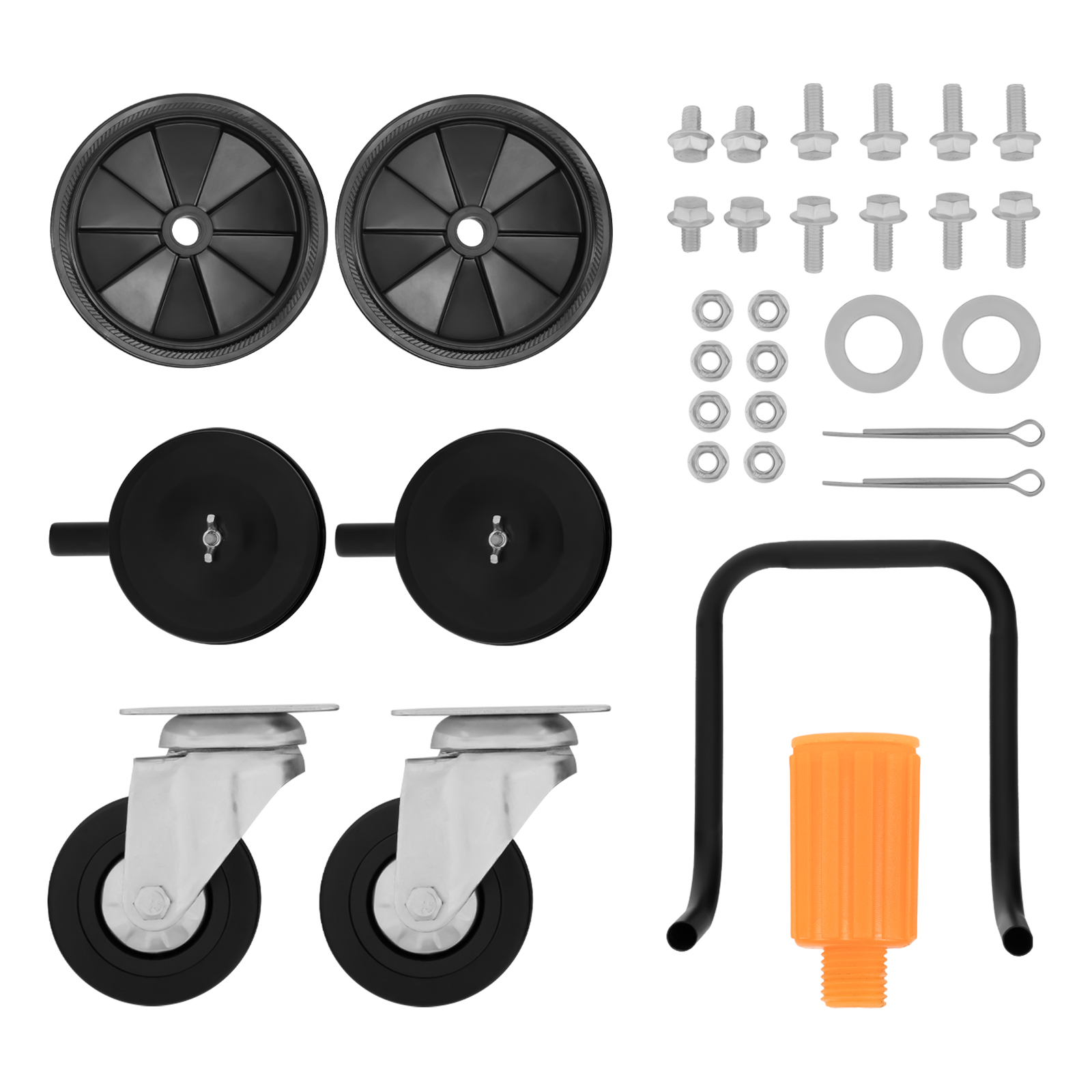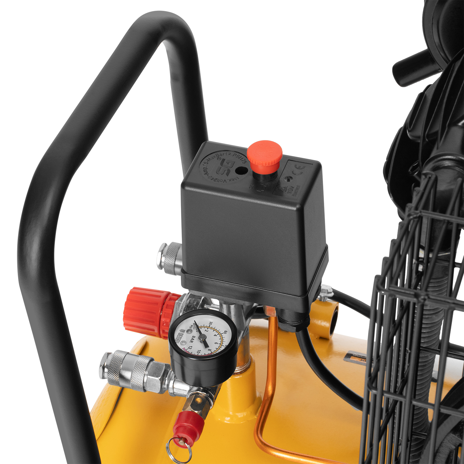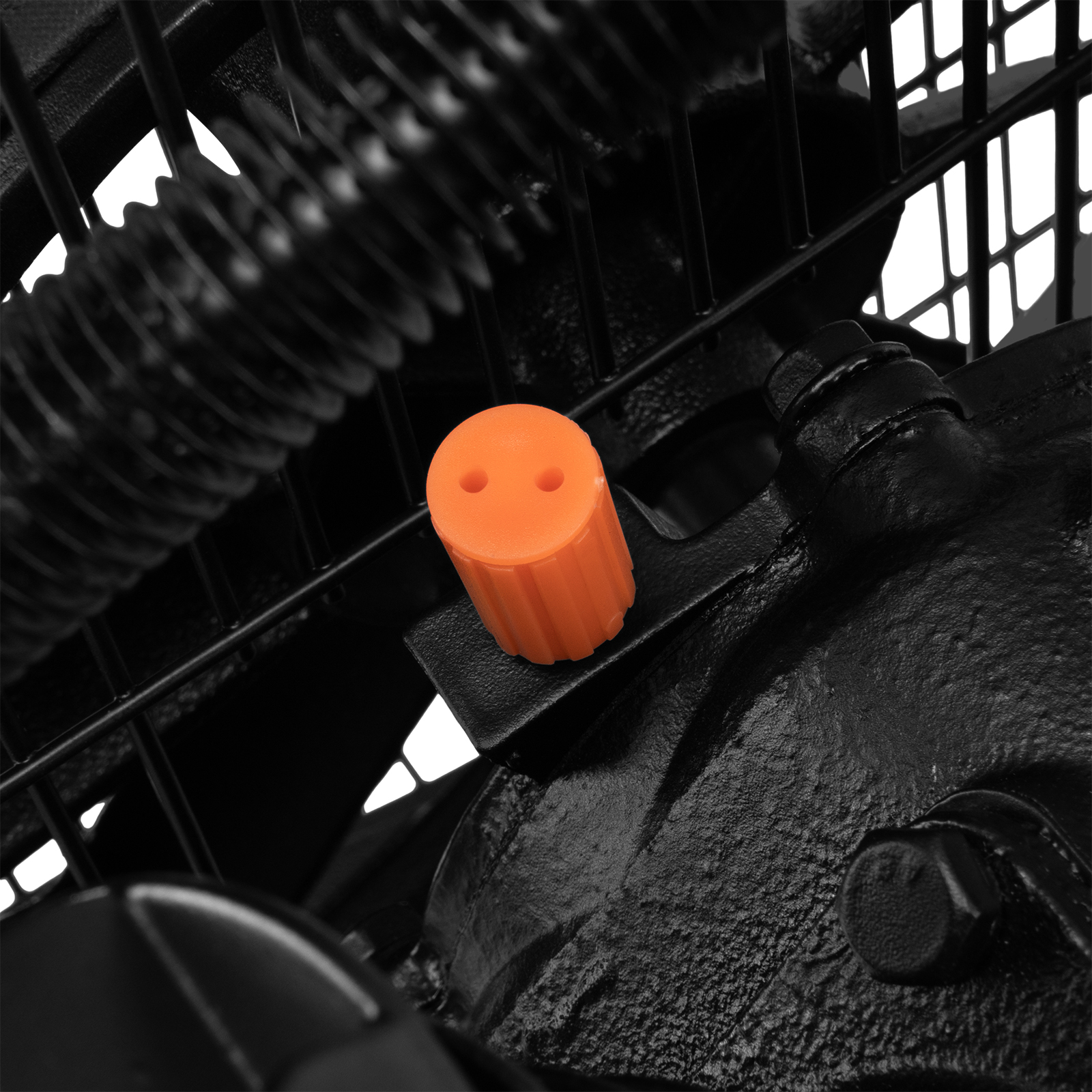 - Транспортировка без проблем — 2 колеса и П-образная ручка помогают перевозить тяжелый компрессор по рабочей площадке.