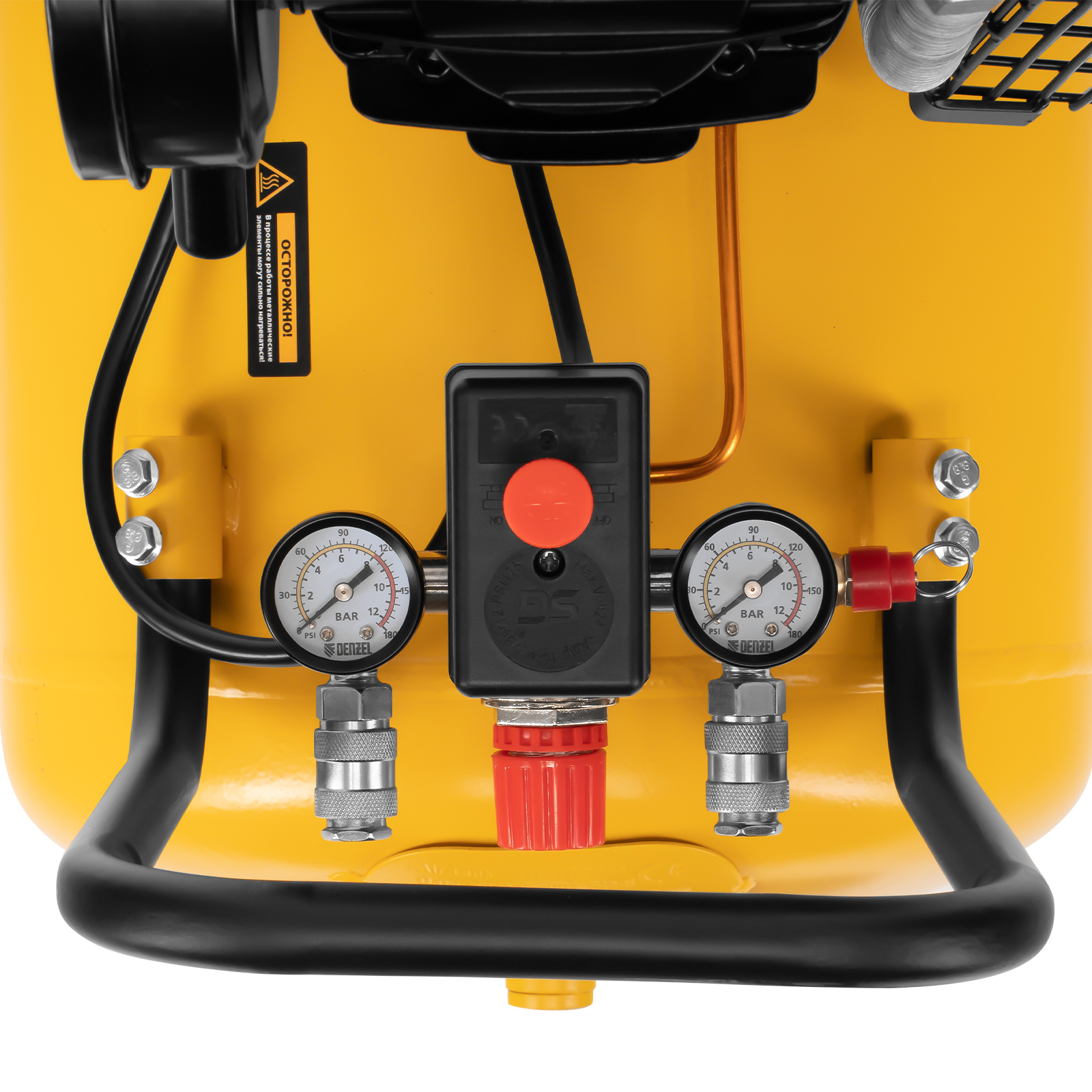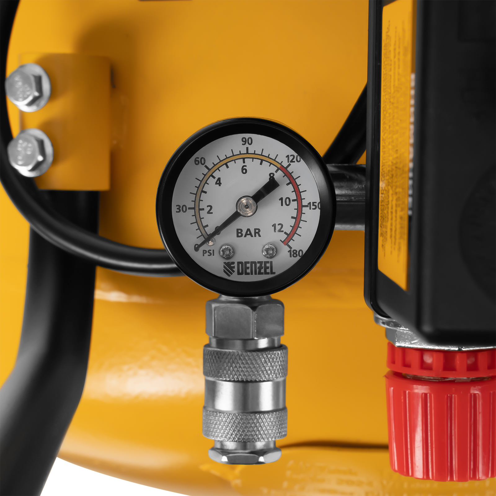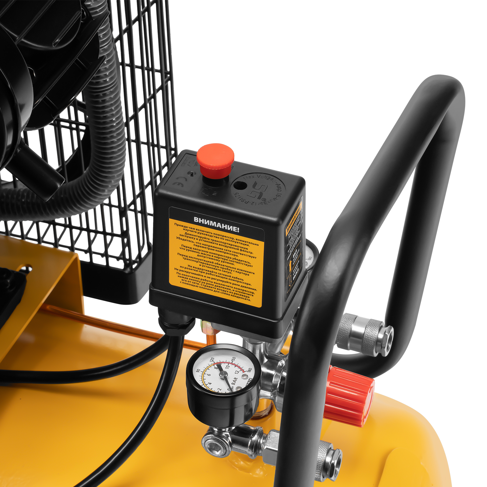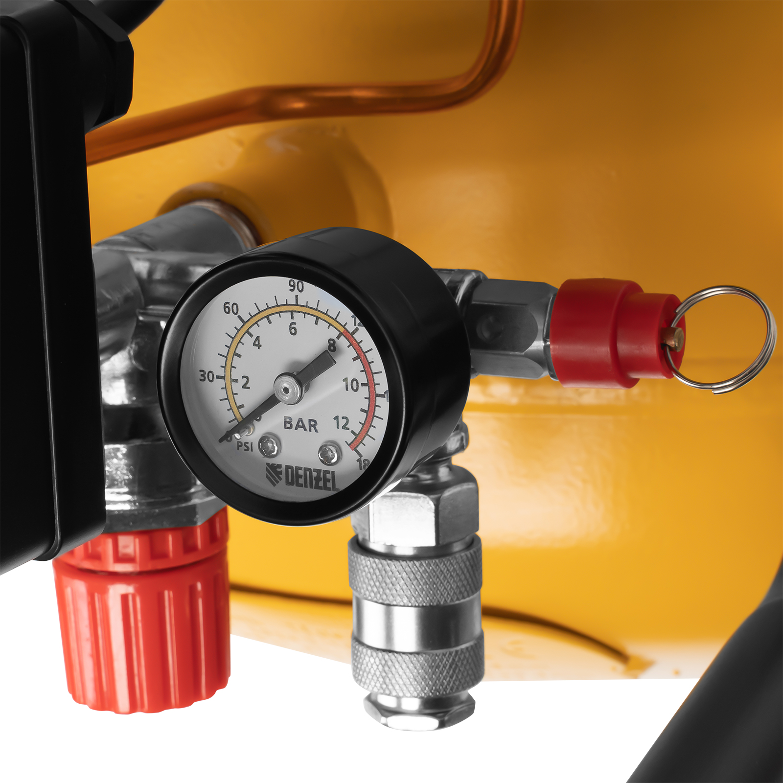 - Удобный контроль работы — 2 манометра позволяют без труда отслеживать уровень давления как в ресивере, так и на выходной магистрали.