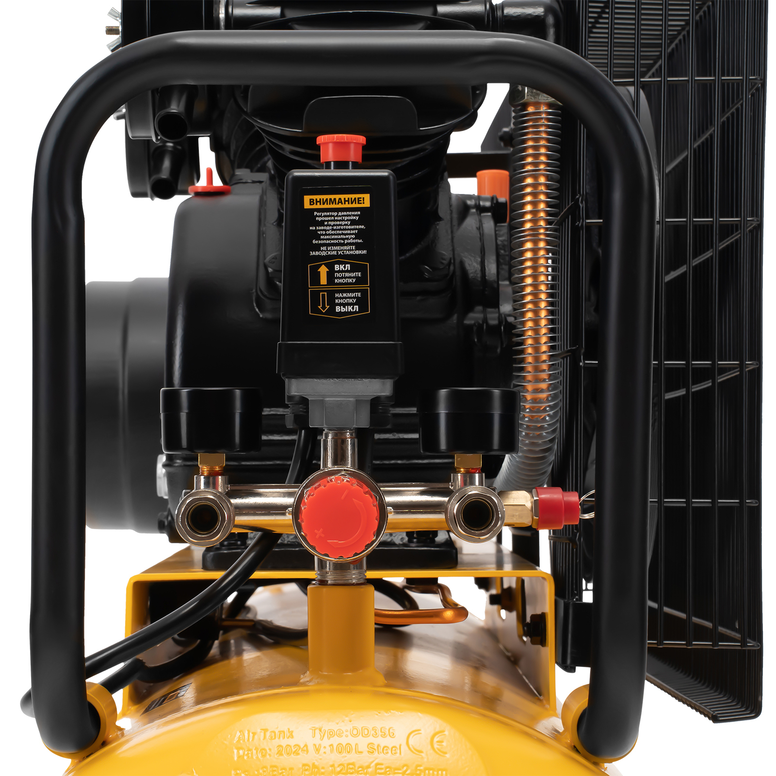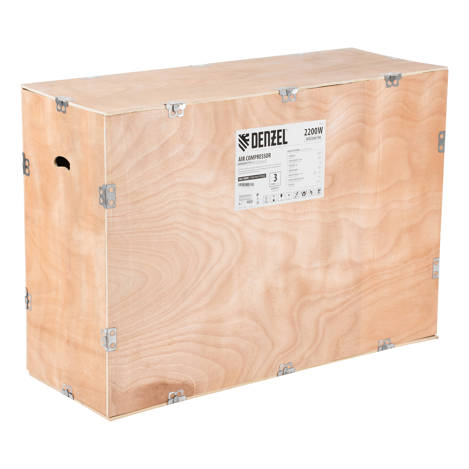 Компрессор воздушный BCV2200/100, ременный привод, 2.2 кВт, 100 литров, 370 л/мин Denzel