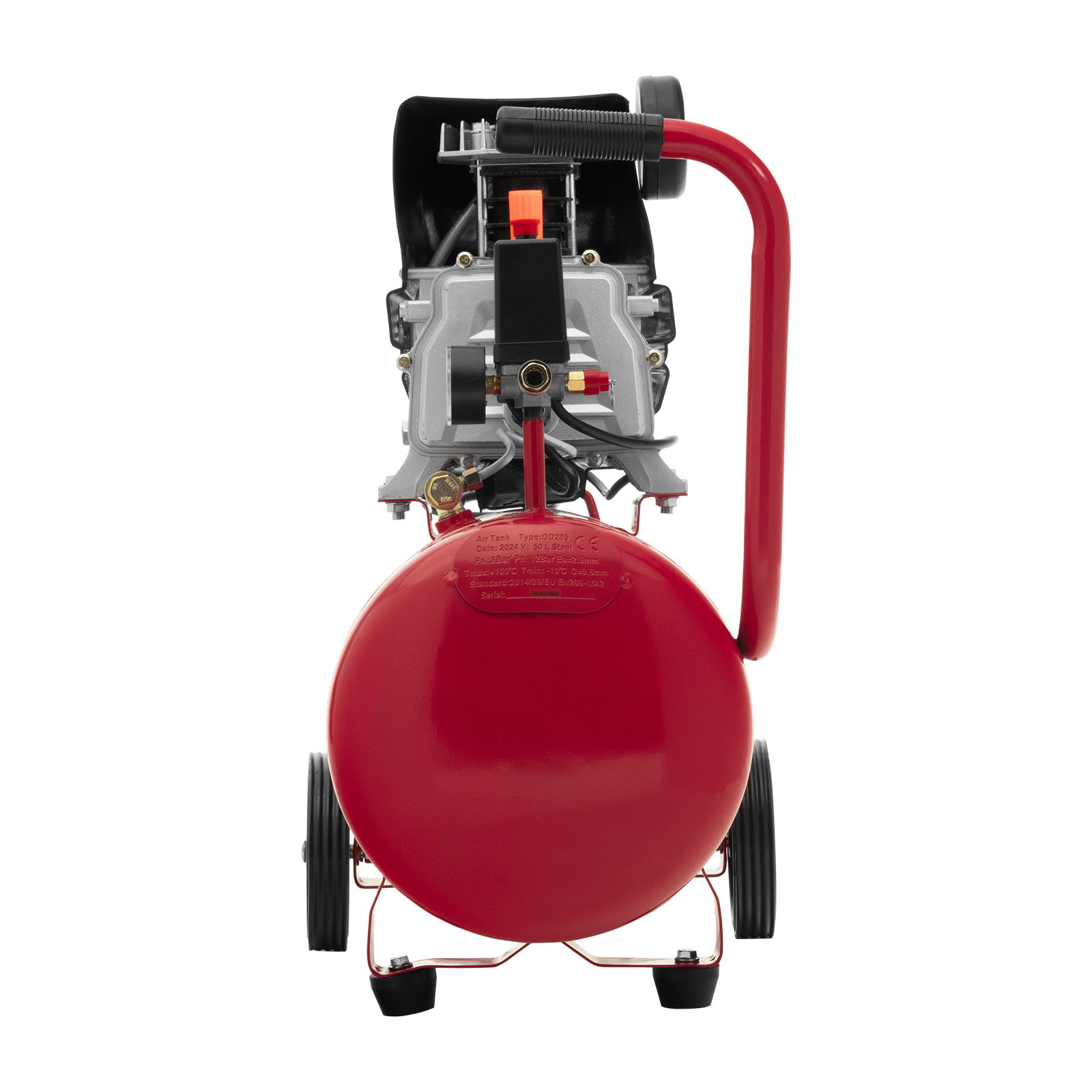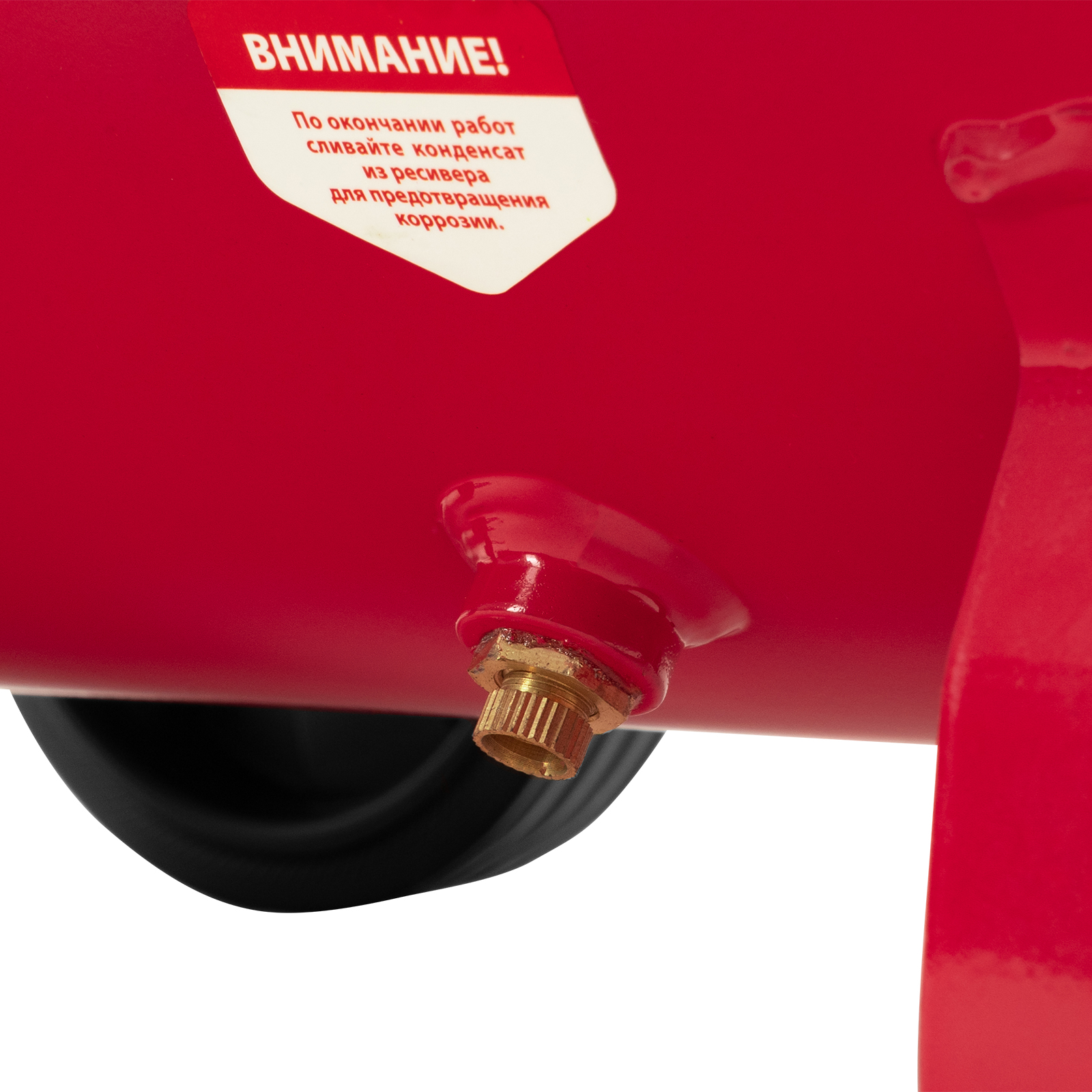 - Удобный контроль давления в ресивере — компрессор оснащен механическим манометром.