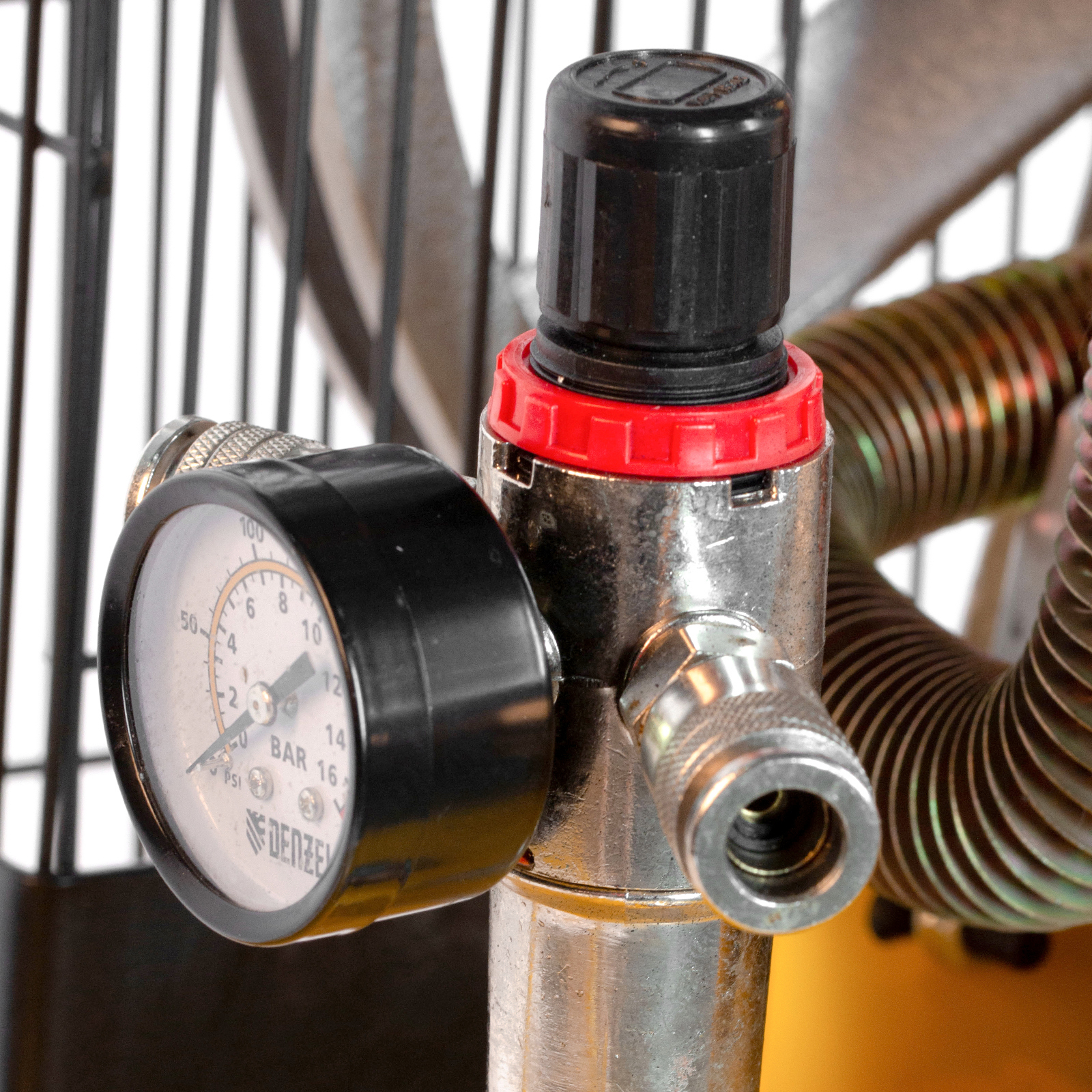Воздушный компрессор Denzel BCI5500-T/200 58128 мощностью 5,5 кВт и производительностью 850 л/мин, с ресивером объемом 200 л, будет полезен на строительной площадке, в автосервисе или на мелком предприятии. Высокая производительность позволяет подключить пневмоинструмент с большим расходом воздуха — пневмошлифовальную машину, пневмолопату, пневмомолоток, пневмодрель и другое оборудование. Увеличенный объем ресивера позволяет снизить частоту включения двигателя и продлить срок службы компрессора.