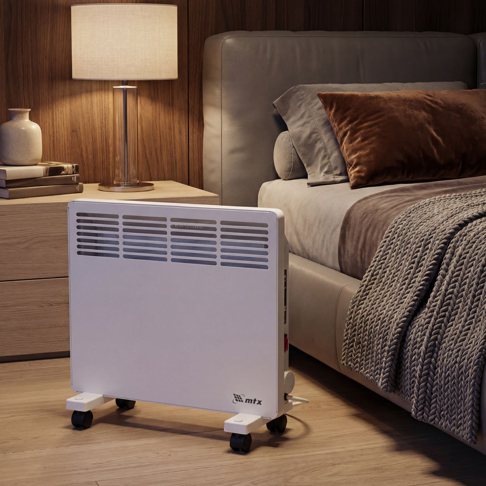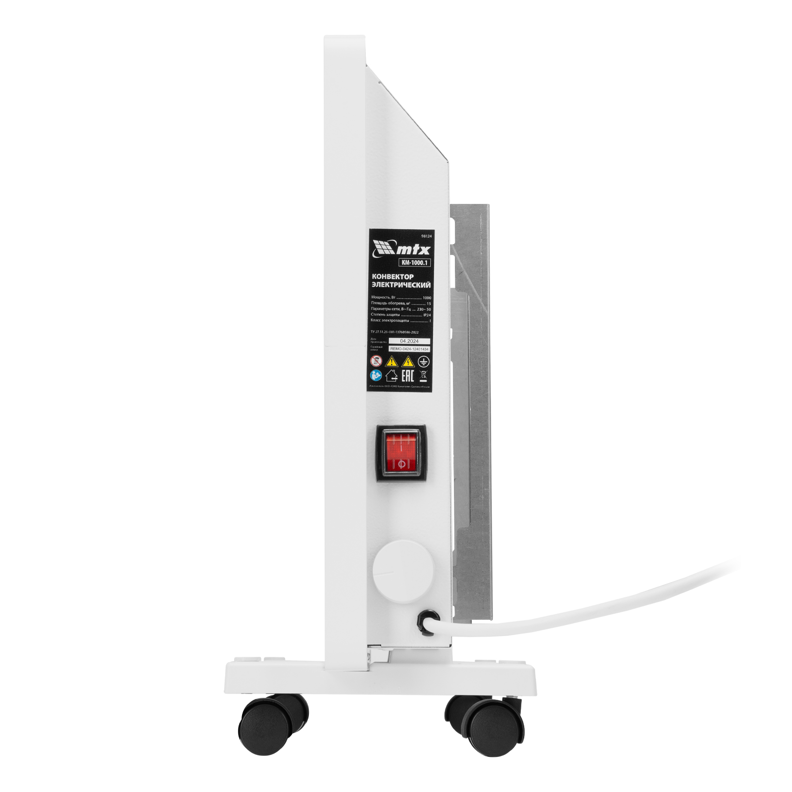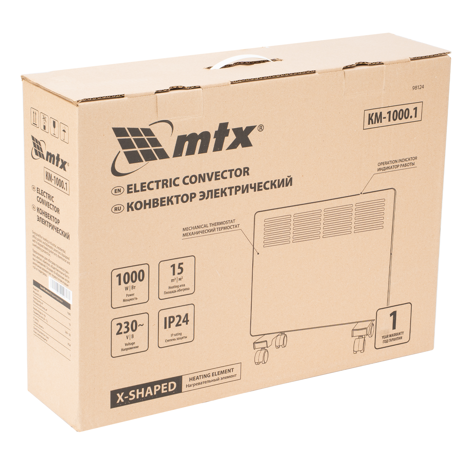 Конвектор электрический MTX KM-1000.1 98124 с X-образным нагревателем, колесами и термостатом, мощностью 1000 Вт, предназначен для использования в закрытых помещениях: квартирах, офисах, на производствах, в общественных местах и т.д. Рекомендуемая площадь обогрева составляет 15 кв.м. Х-образный нагревательный элемент обеспечивает быстрый и равномерный прогрев помещения до необходимой температуры, при этом не сушит воздух.