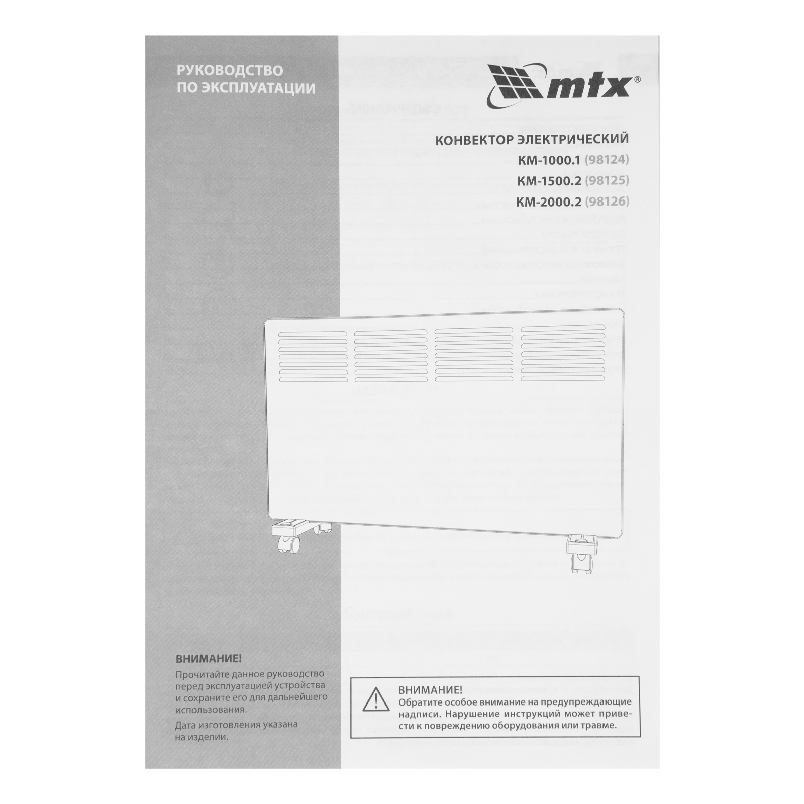 Конвектор электрический КМ-1000.1, 230 В, 1000 Вт, X-образный нагреватель, колеса, термостат MTX