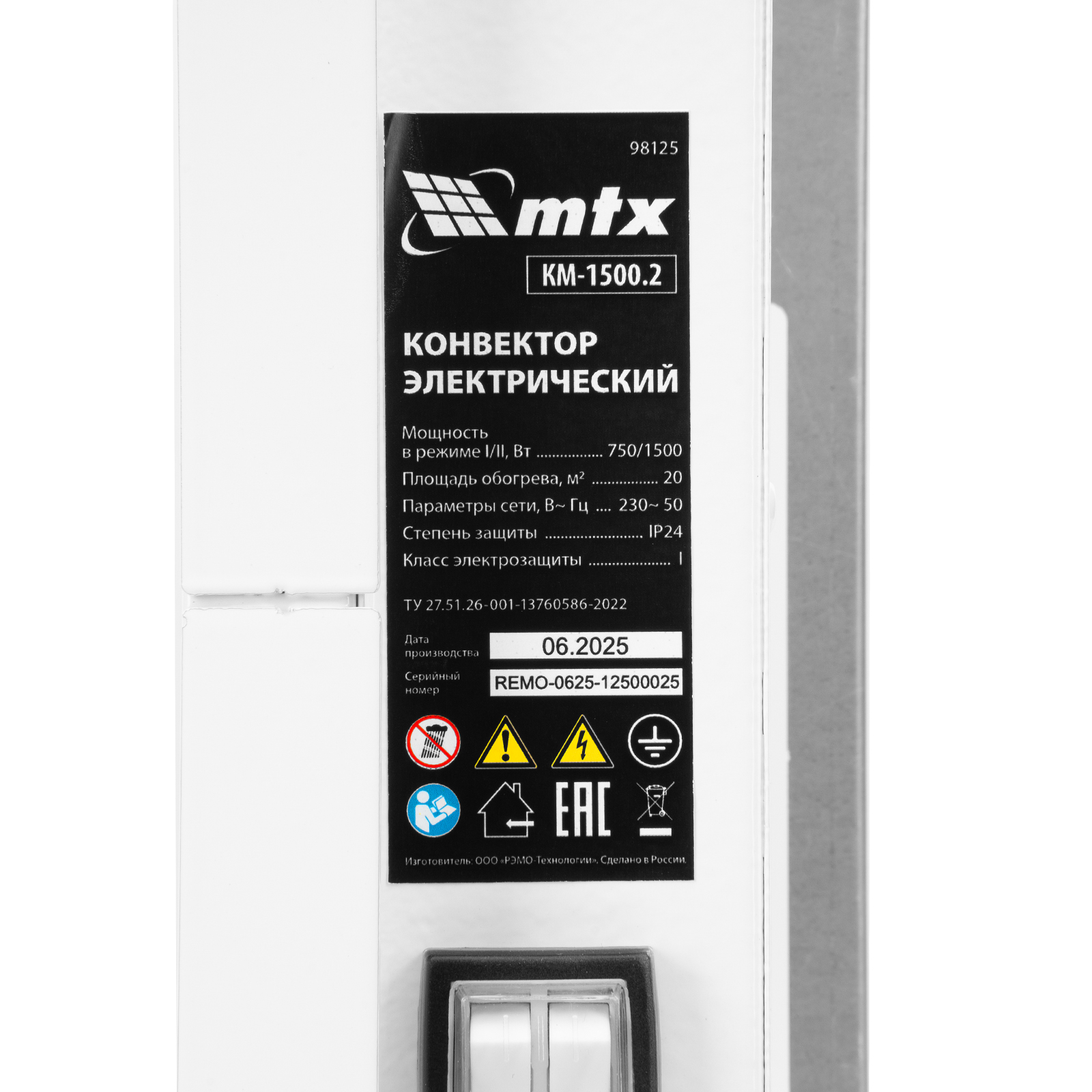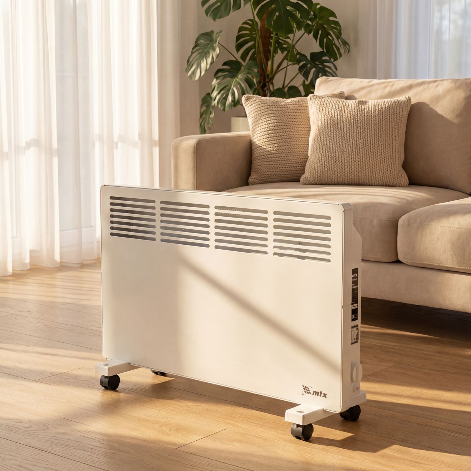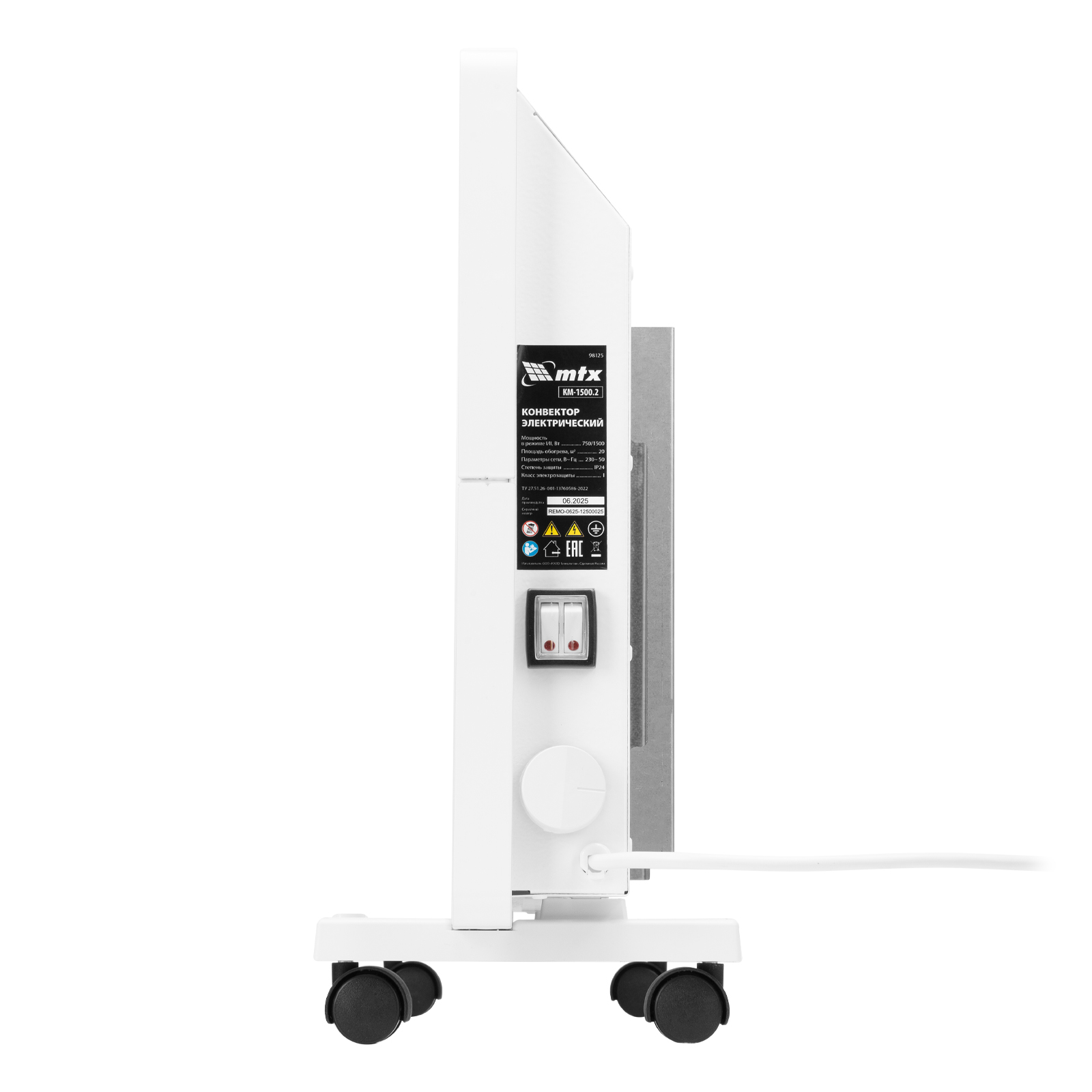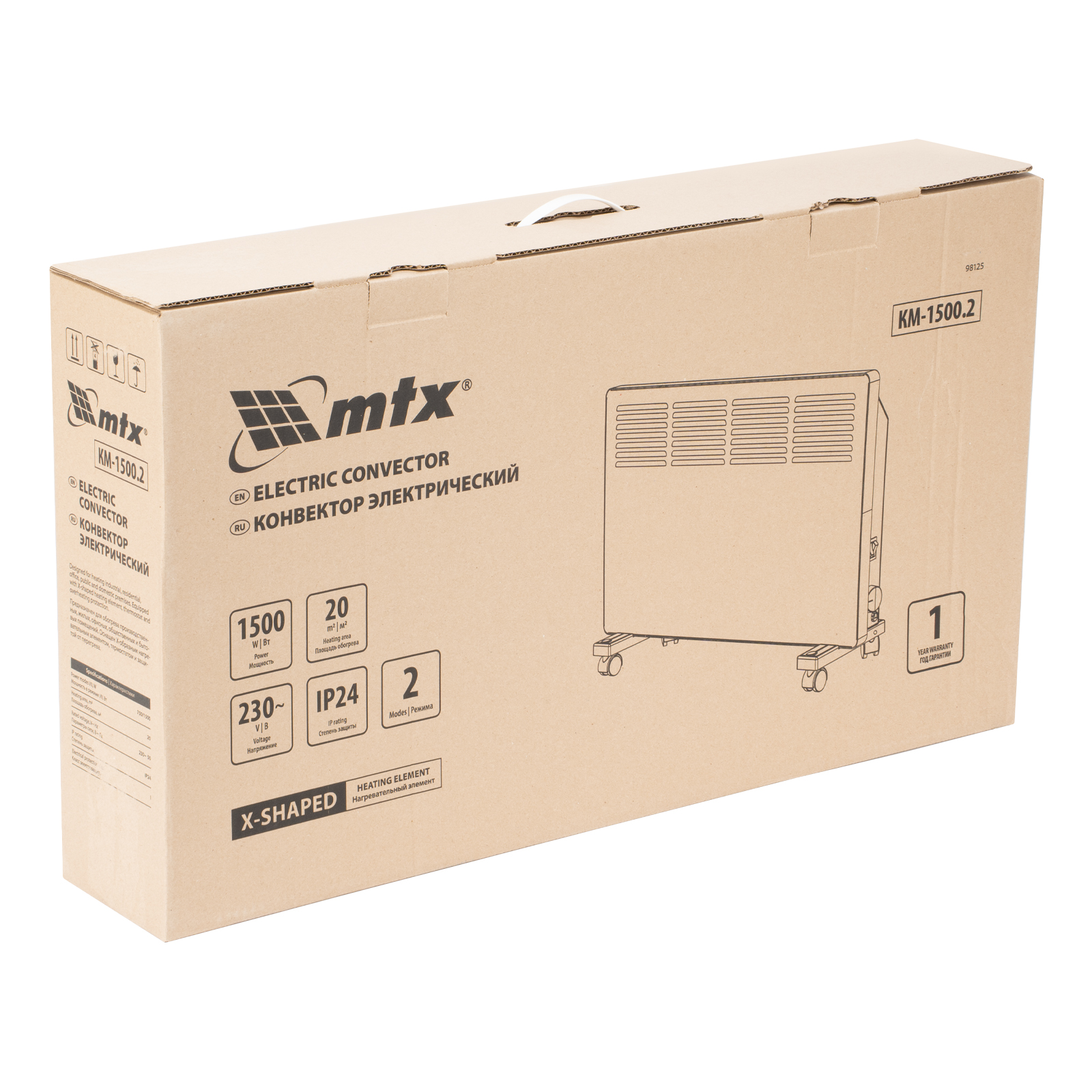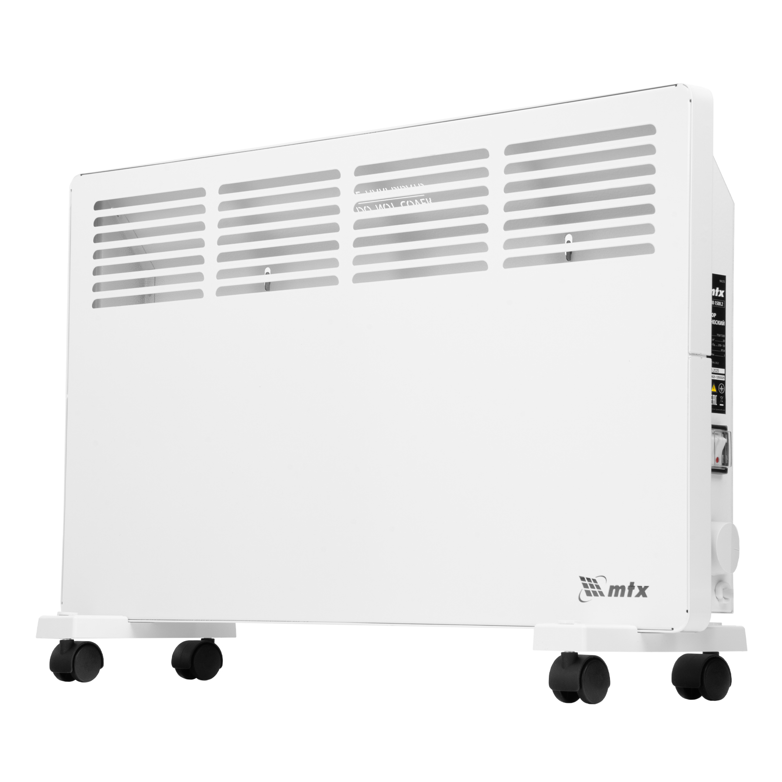 Конвектор электрический MTX KM-1500.2 98125 с X-образным нагревателем, колесами и термостатом, мощностью 1500 Вт, предназначен для использования в закрытых помещениях: квартирах, офисах, на производствах, в общественных местах и т.д. Рекомендуемая площадь обогрева составляет 20 кв.м. Х-образный нагревательный элемент обеспечивает быстрый и равномерный прогрев помещения до необходимой температуры, при этом не сушит воздух.