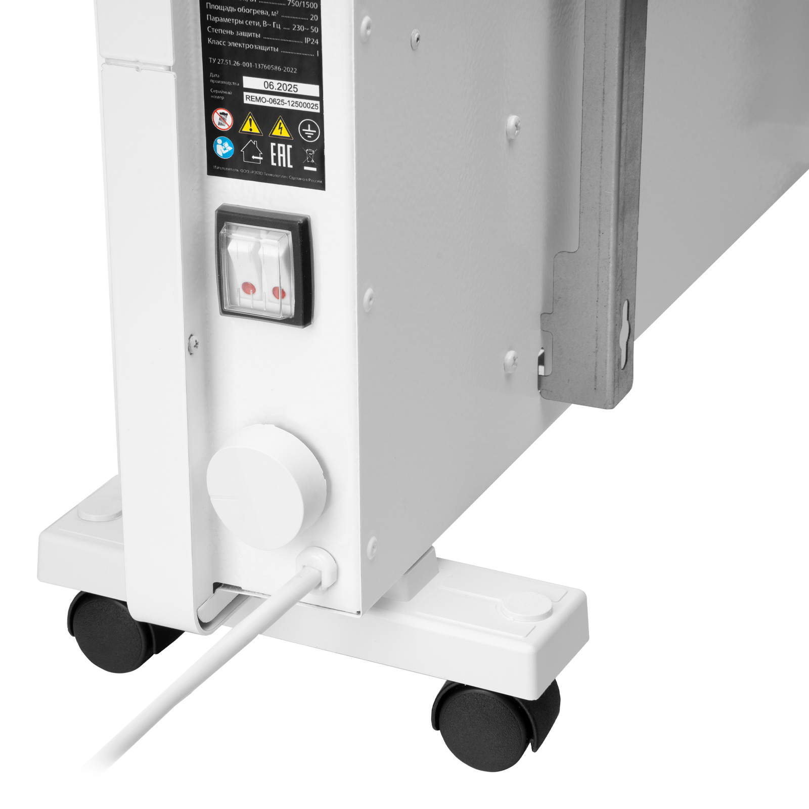 - 2 режима работы (полный обогрев на мощности 1500 Вт и частичный на 750 Вт) — конвектор позволяет прогревать холодное помещение и поддерживать тепло в отапливаемом.