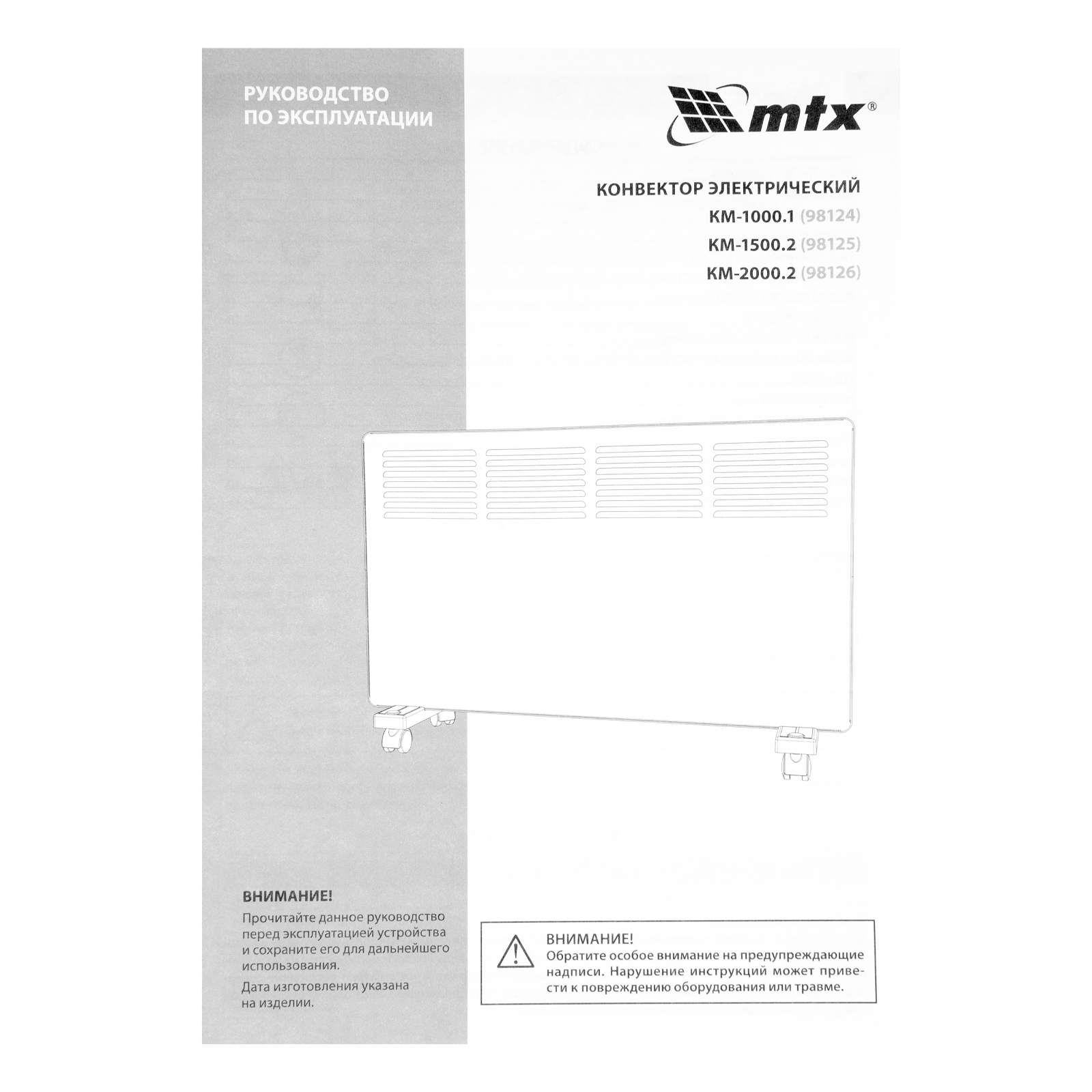 Конвектор электрический КМ-1500.2, 230 В, 1500 Вт, X-образный нагреватель, колеса, термостат MTX