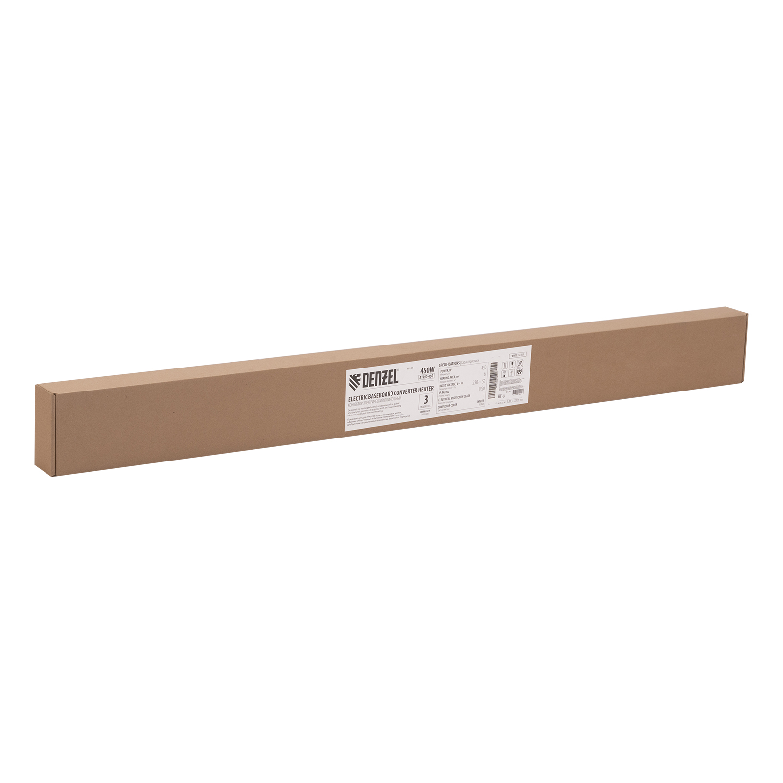 Конвектор электрический плинтусный ATRIC-450, 230 В, 450 Вт, ТЭН Denzel