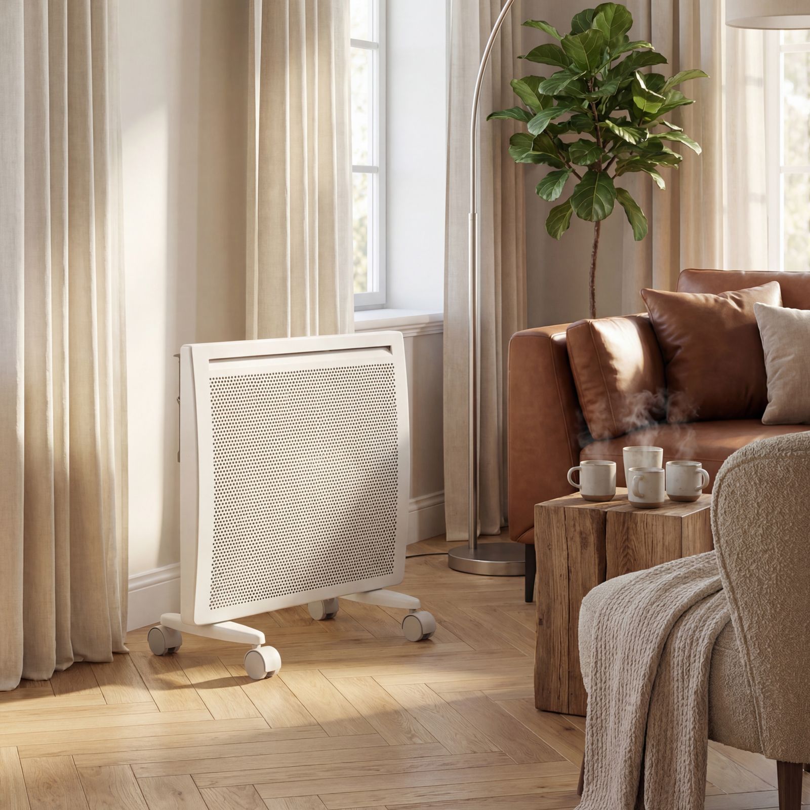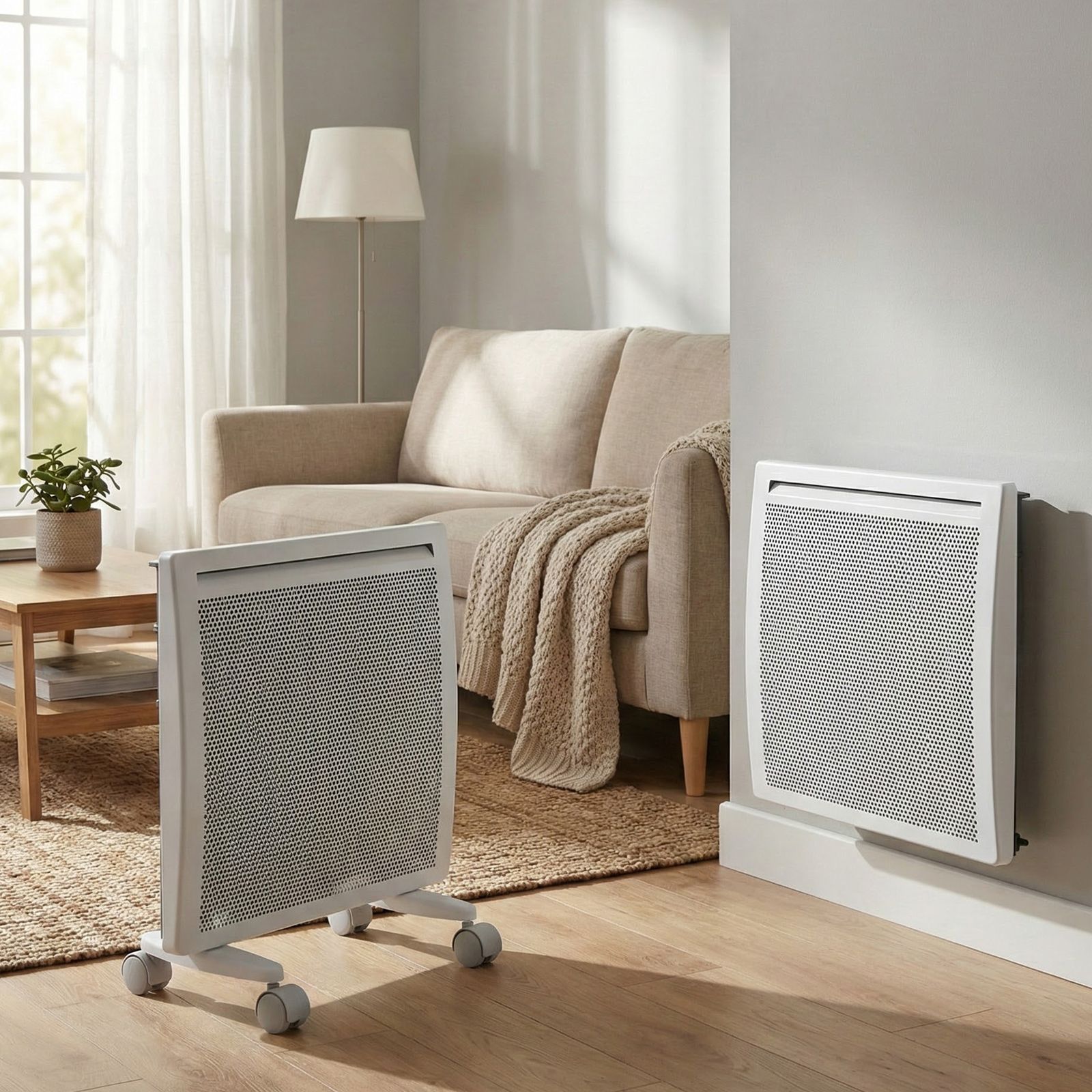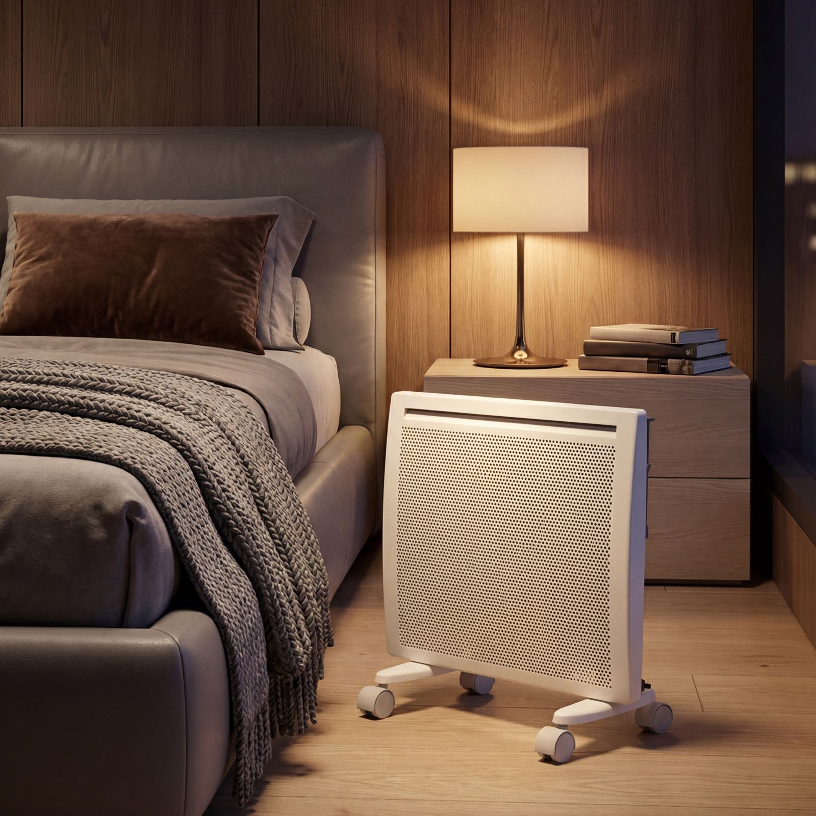 - Высокая энергоэффективность — гибридный нагревательный элемент излучает инфракрасное тепло и одновременно обеспечивает конвекцию воздуха, что позволяет прогревать помещение заметно быстрее при тех же затратах энергии.
