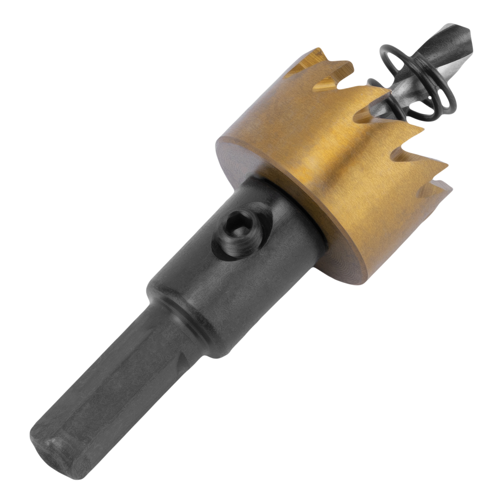 Коронка Denzel 724103 диаметром 22 мм, из стали HSS, с нитридтитановым покрытием, применяется для сверления отверстий в черных, цветных металлах, пластике и других материалах. Рассчитана на профессиональное использование на строительной площадке. Коронка пригодится при прокладке коммуникаций, монтаже оборудования, крепежных элементов и различных конструкций.