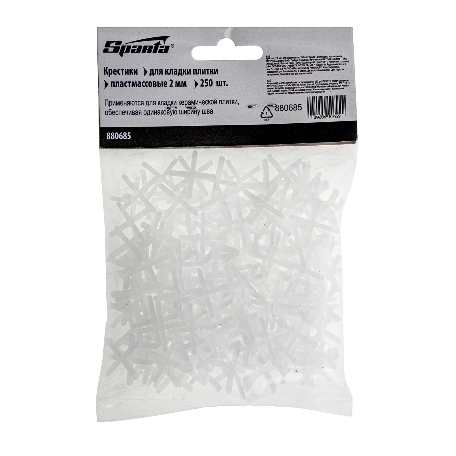 Крестики для кладки плитки Sparta 880685 толщиной 2,0 мм, 250 шт. в упаковке, позволяют добиться одинакового межплиточного расстояния в ходе облицовочных работ. Облегчают укладку плиточного покрытия и обеспечивают ему эстетичный внешний вид.