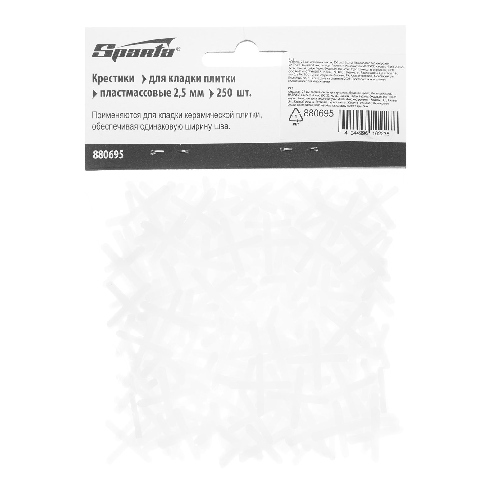 Крестики, 2.5 мм, для кладки плитки, 250 шт Sparta