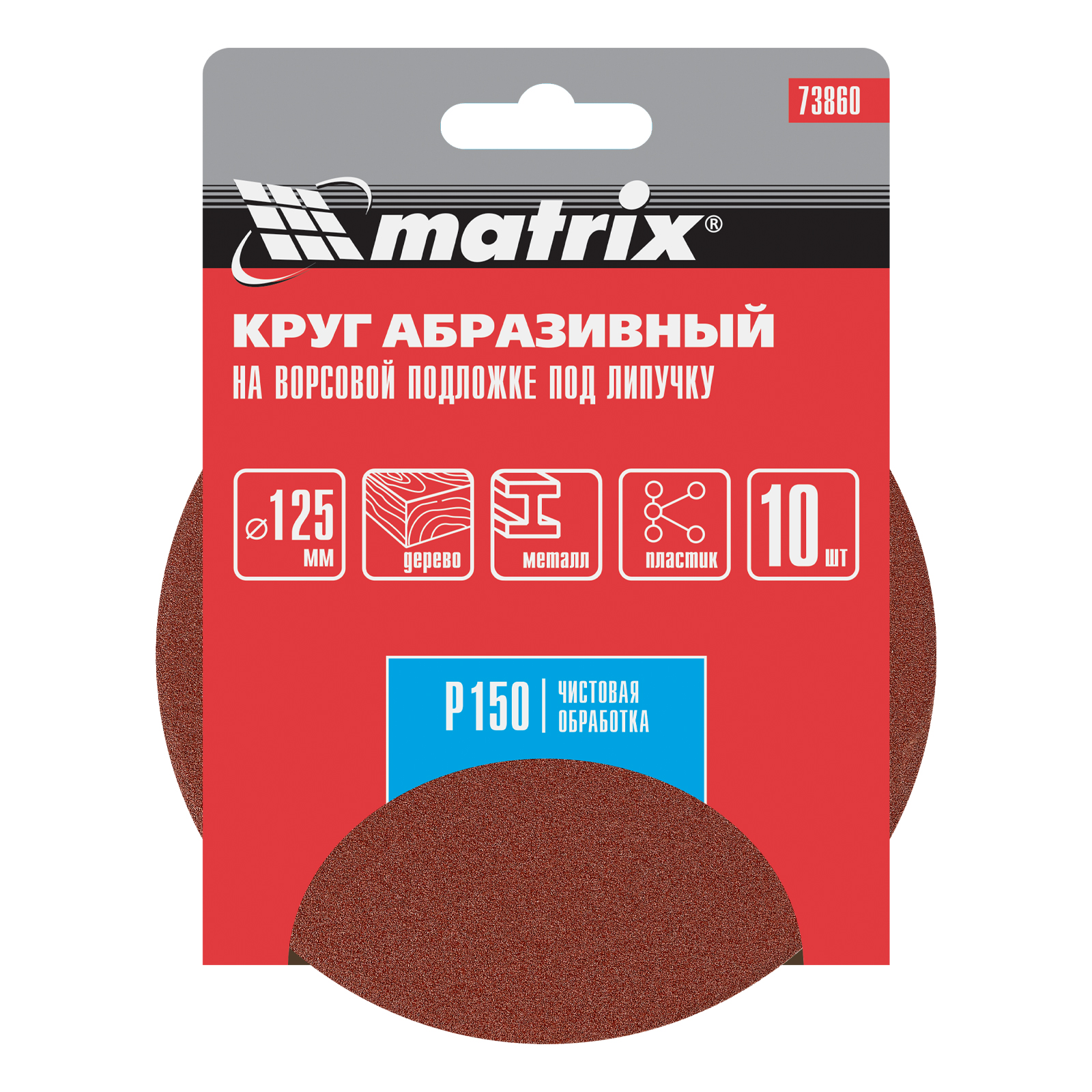 Круг абразивный на ворсовой подложке под "липучку", P 150, 125 мм, 10 шт Matrix
