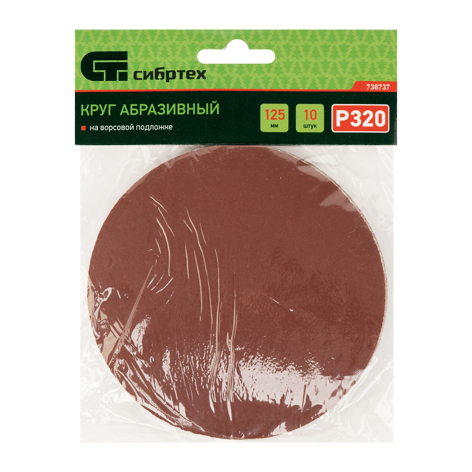Круг абразивный на ворсовой подложке под "липучку", P 320, 125 мм, 10 шт Сибртех