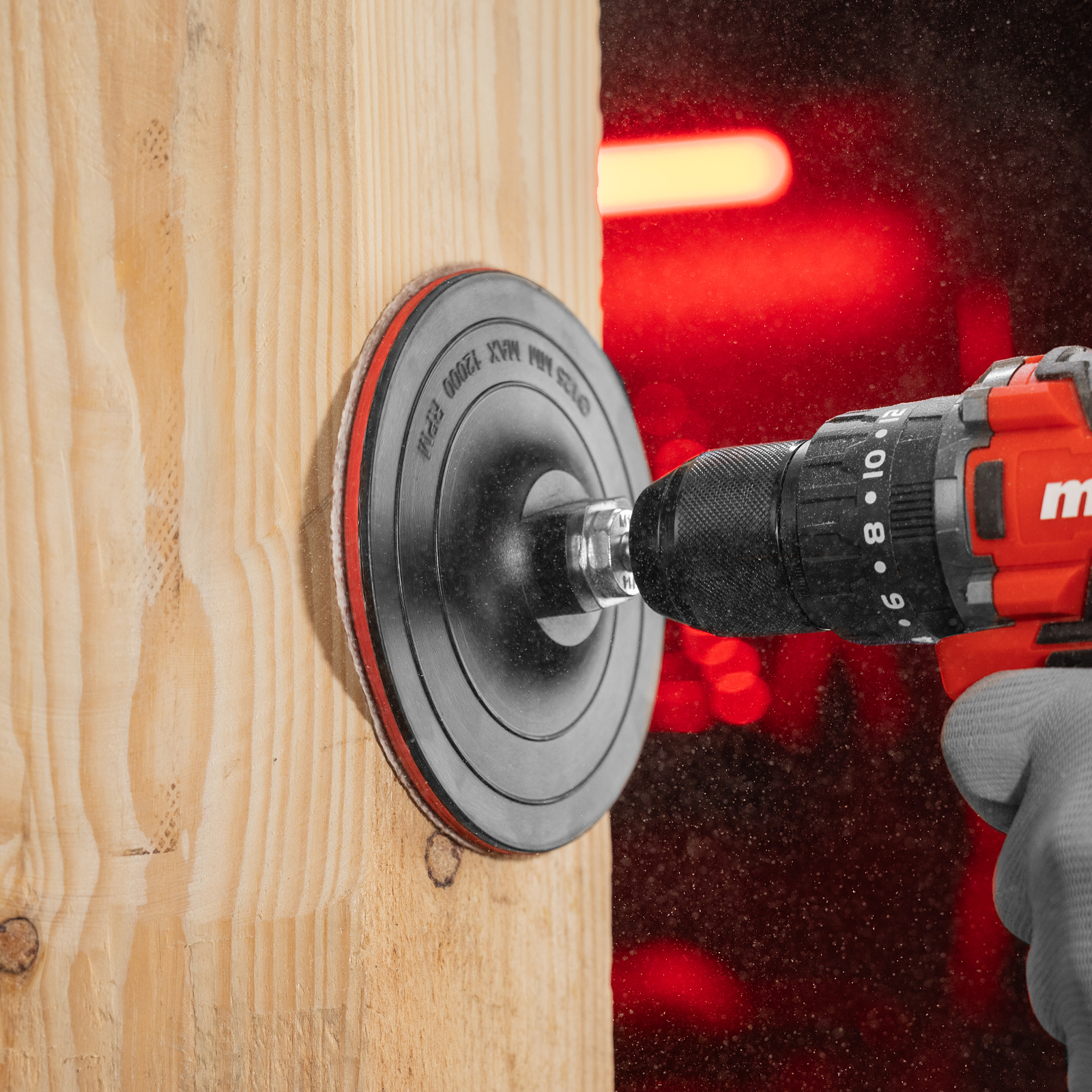 - Ворсовая подложка позволяет быстро крепить круг к опорной тарелке на липучку.
