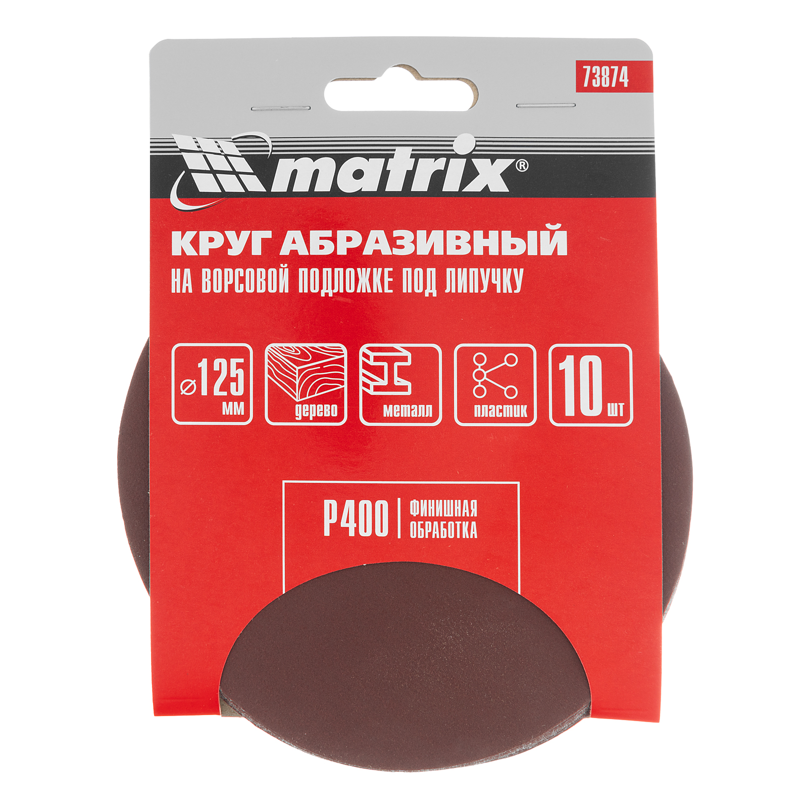 Круг абразивный на ворсовой подложке под "липучку", P 400, 125 мм, 10 шт Matrix