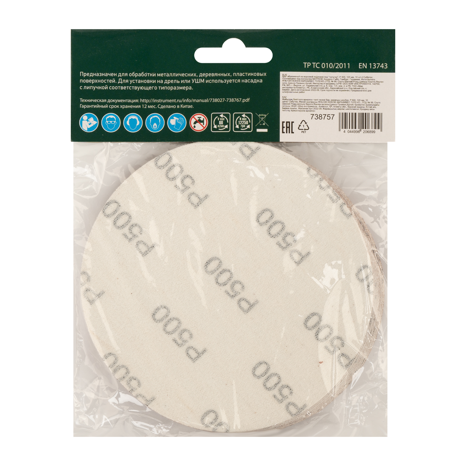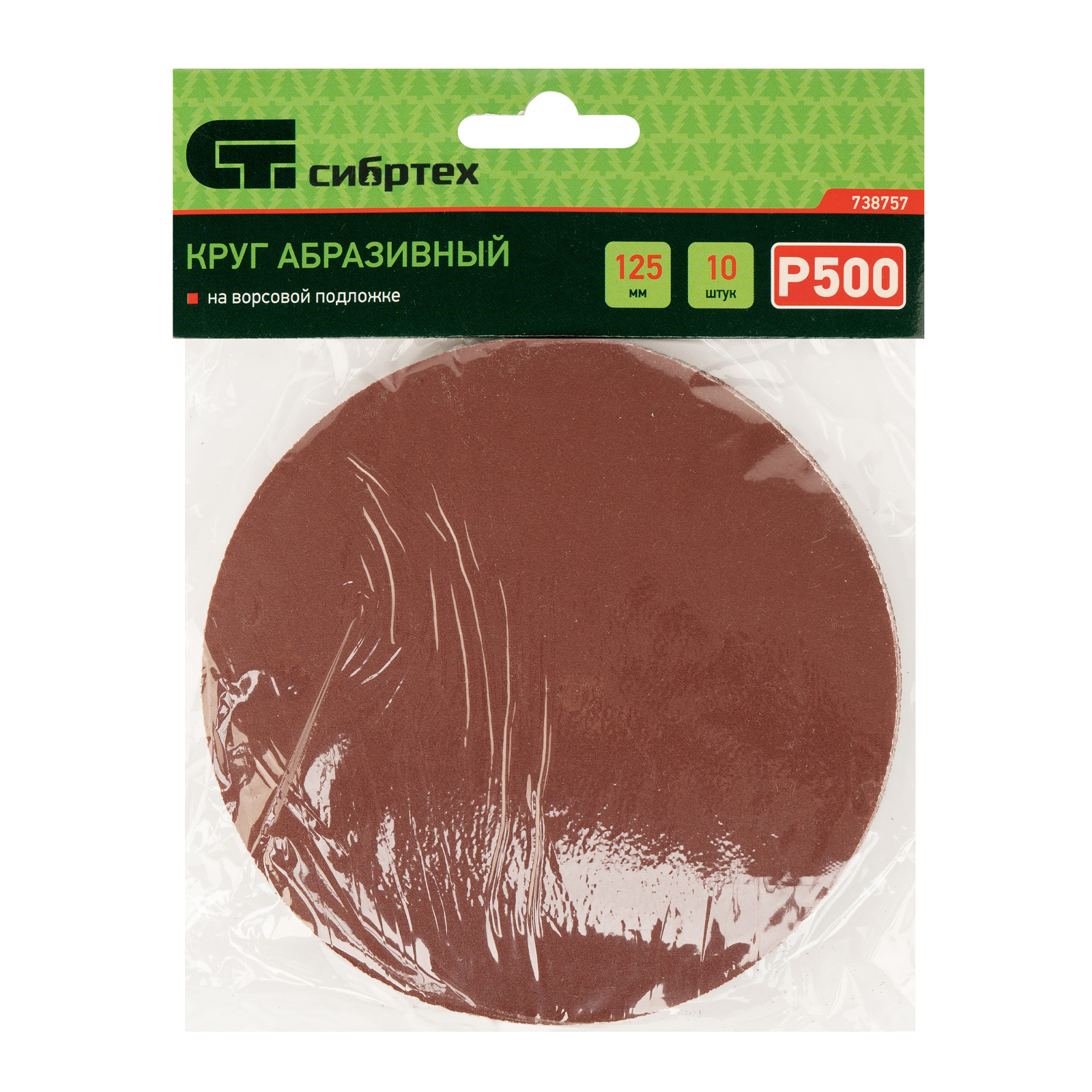Круг абразивный на ворсовой подложке под "липучку", P 500, 125 мм, 10 шт Сибртех |