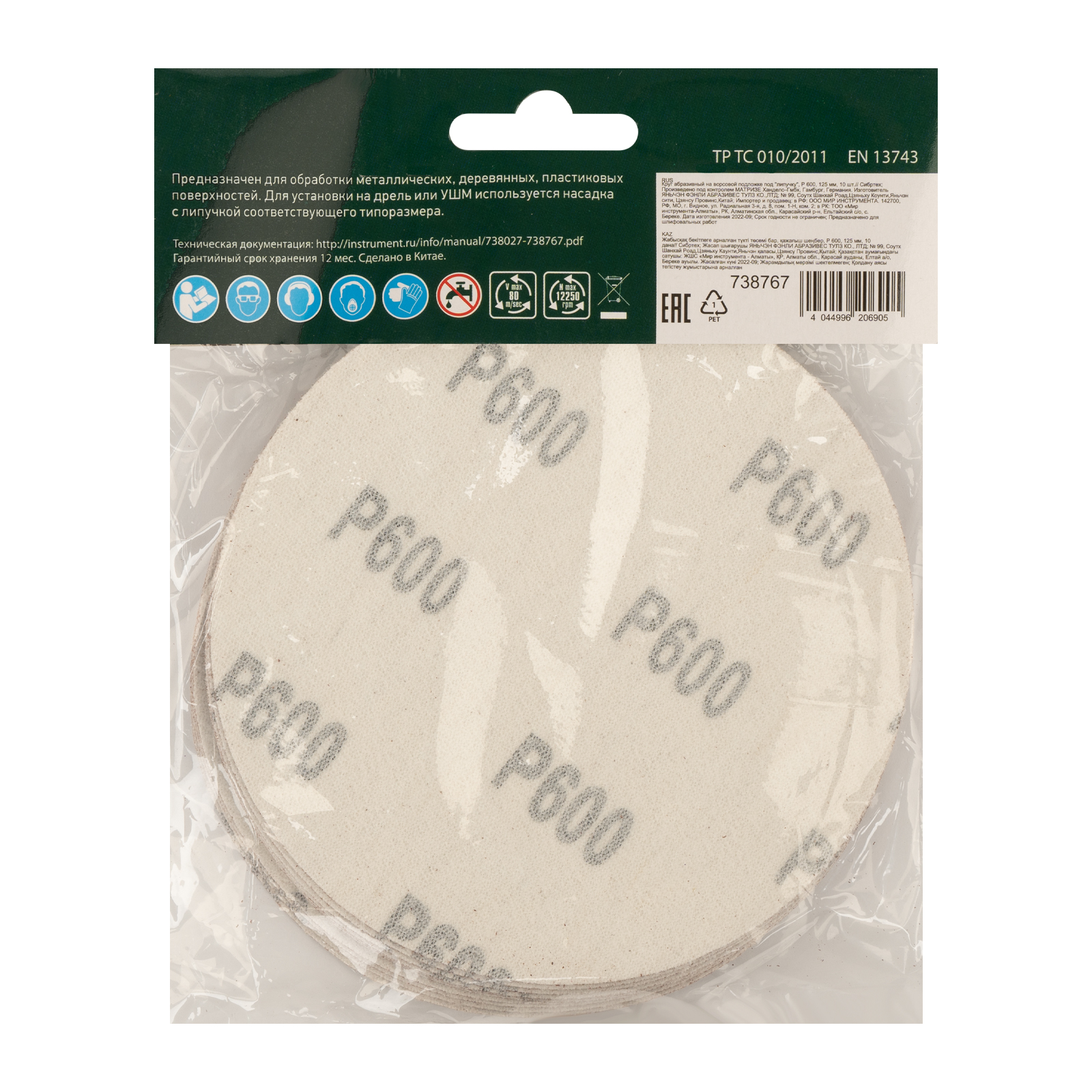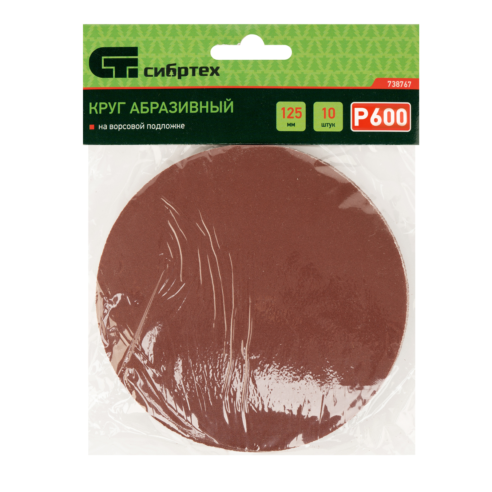 Круг абразивный на ворсовой подложке под "липучку", P 600, 125 мм, 10 шт Сибртех