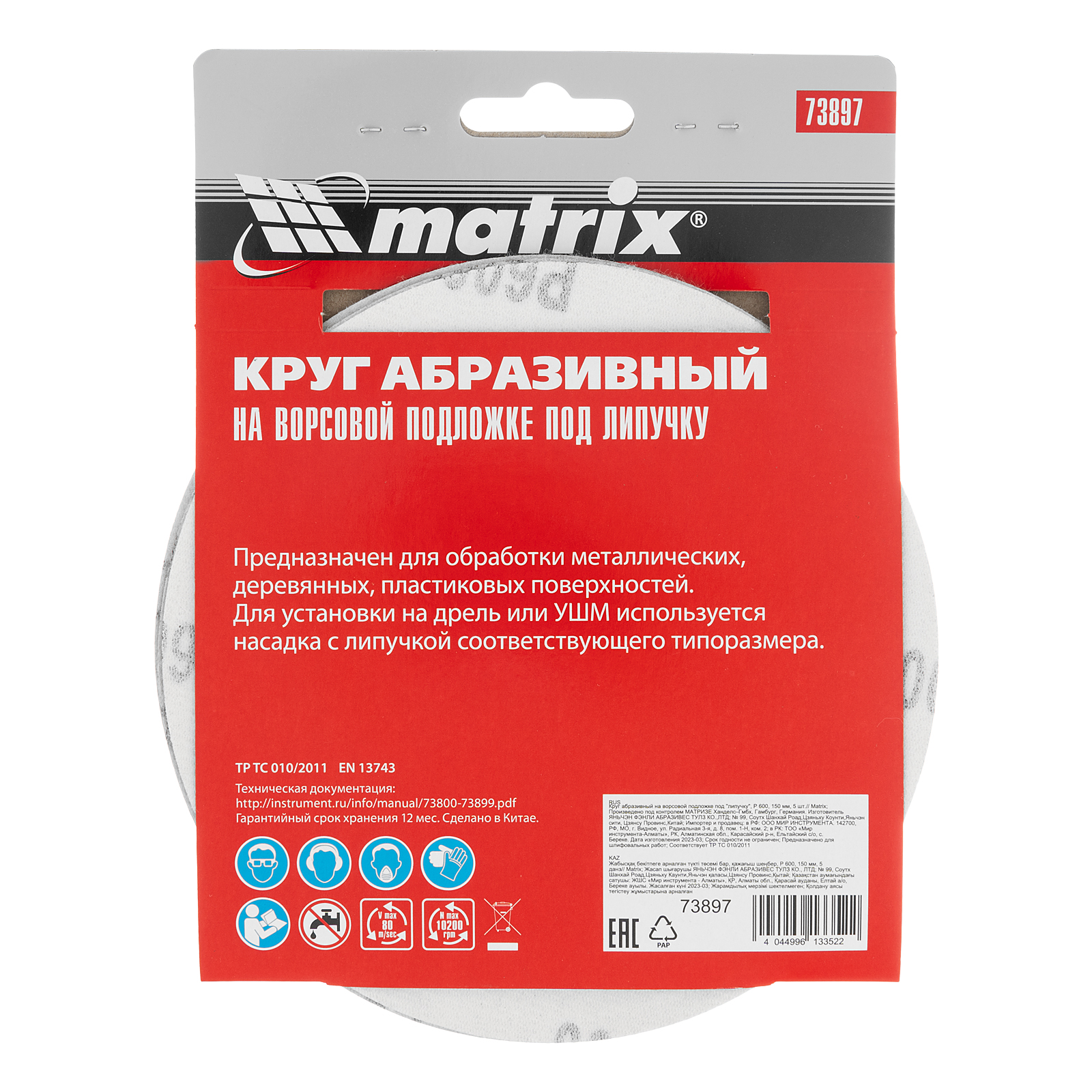 Абразивный круг на ворсовой подложке под «липучку» Matrix Р 600 арт. 73897 используется для итоговой обработки металла, дерева, пластика и других поверхностей. Круг устанавливается на эксцентриковые (орбитальные) шлифовальные машинки или на дрель с помощью опорной насадки Matrix.