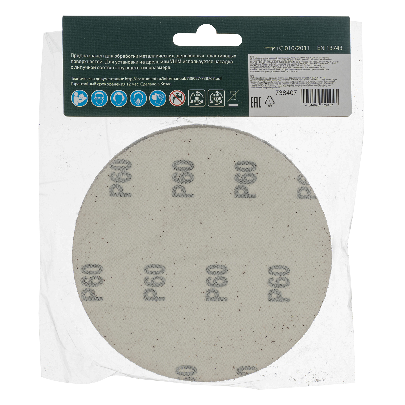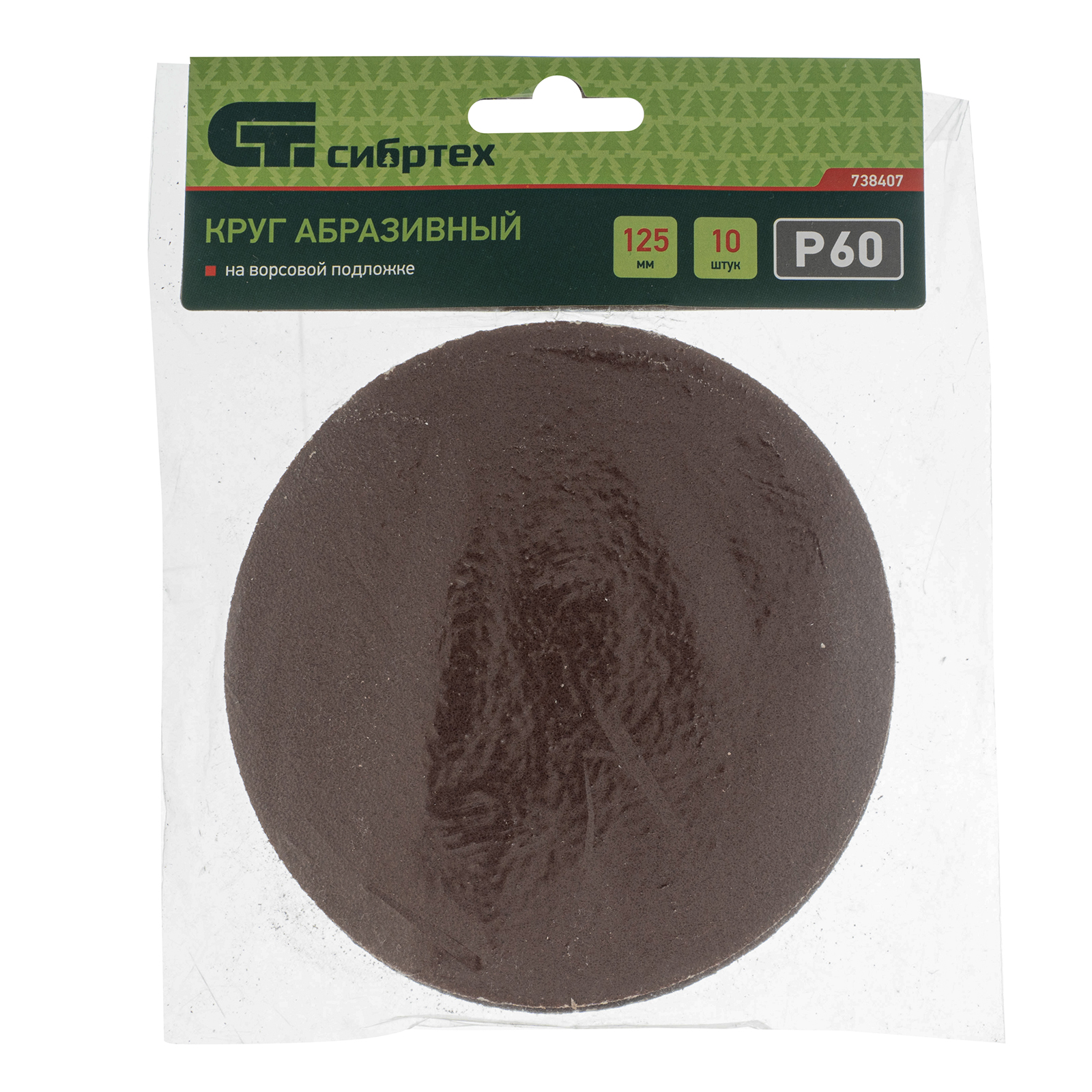 Круг абразивный на ворсовой подложке под "липучку", P 60, 125 мм, 10 шт Сибртех
