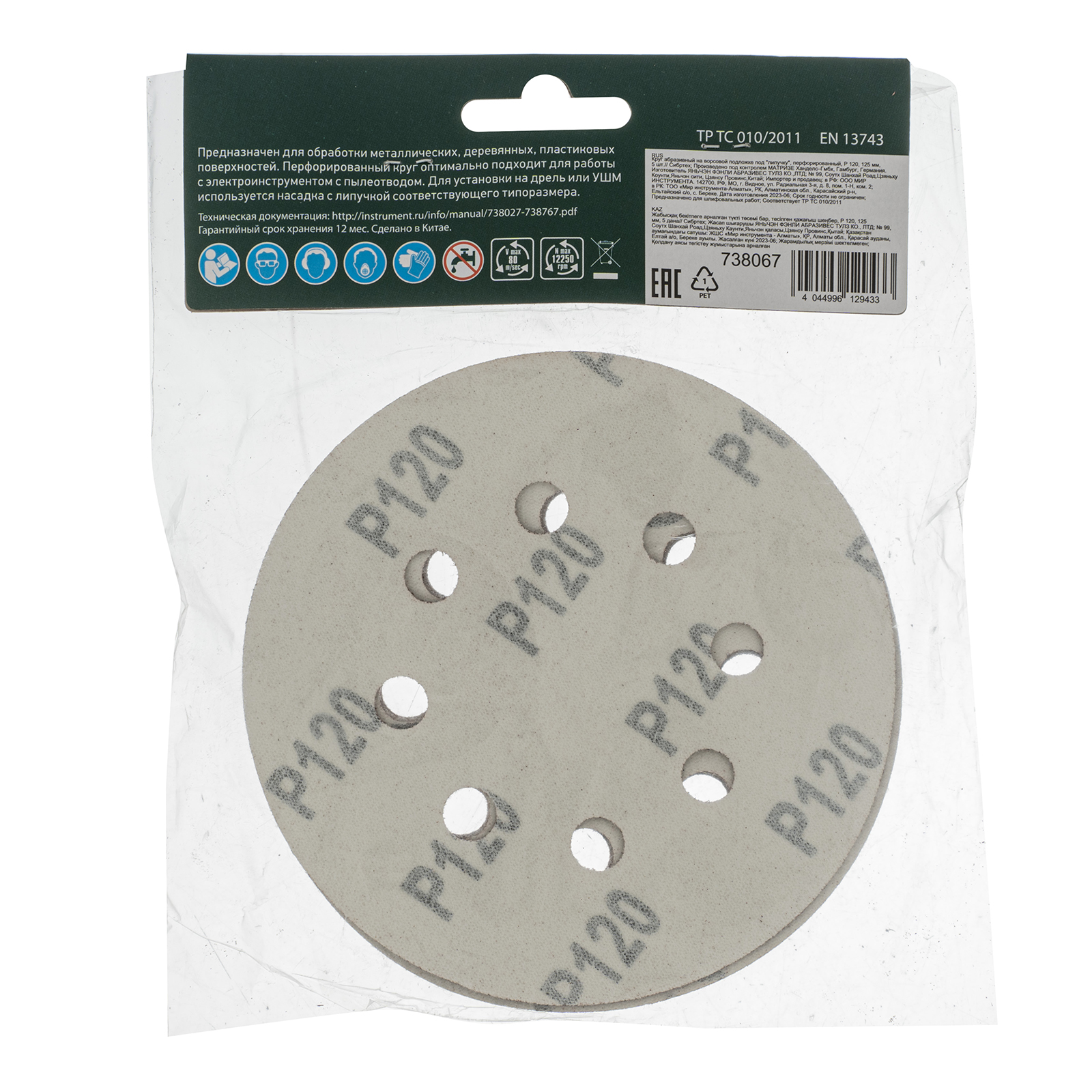 Перфорированный абразивный круг Сибртех 738067 диаметром 125 мм, со среднезернистым абразивом P 120, на ворсовой подложке под «липучку», 5 шт. в упаковке, используется для сухого чистового шлифования металла, древесины, пластика и других материалов. Устраняет дефекты, придает гладкость поверхностям, подготавливая их к последующей отделке. Круг устанавливается на эксцентриковую (орбитальную) шлифовальную машинку с отводом воздуха или на дрель с помощью опорной насадки.