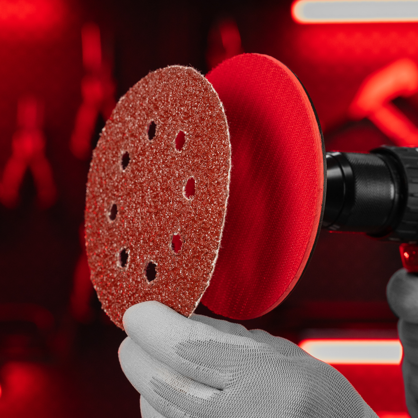 - Быстрая установка и замена оснастки — благодаря ворсовой подложке круг крепится к опорной тарелке на липучку за несколько секунд.