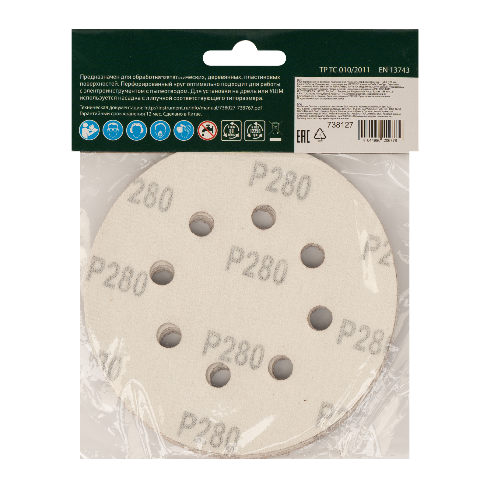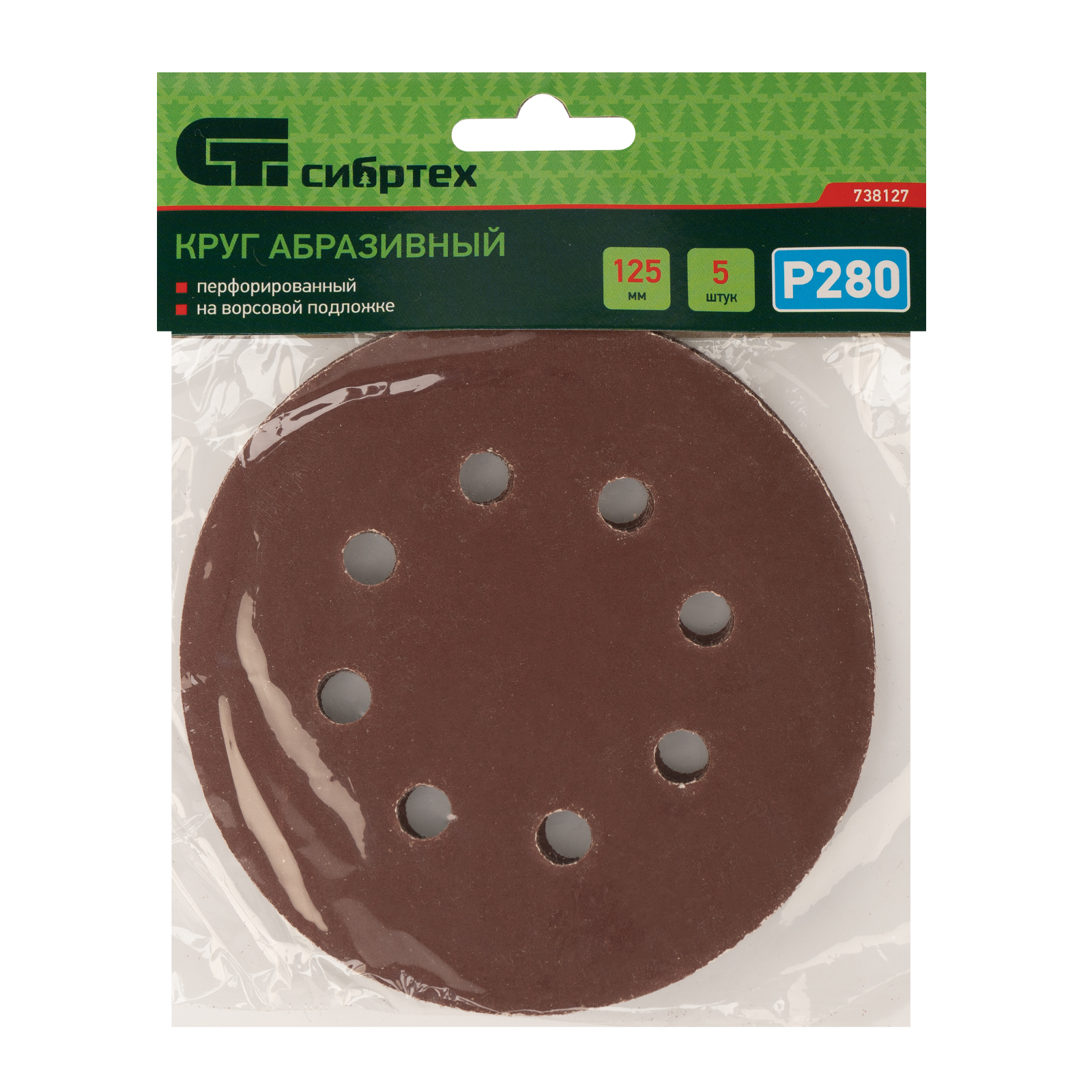Круг абразивный на ворсовой подложке под "липучку", перфорированный, P 280, 125 мм, 5 шт Сибртех